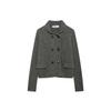 Novo Casaco Versátil Feminino Outono/Inverno 2024 Gola Alta Abotoamento Simples Manga Longa Bolso Solto Casual Lã de Cordeiro