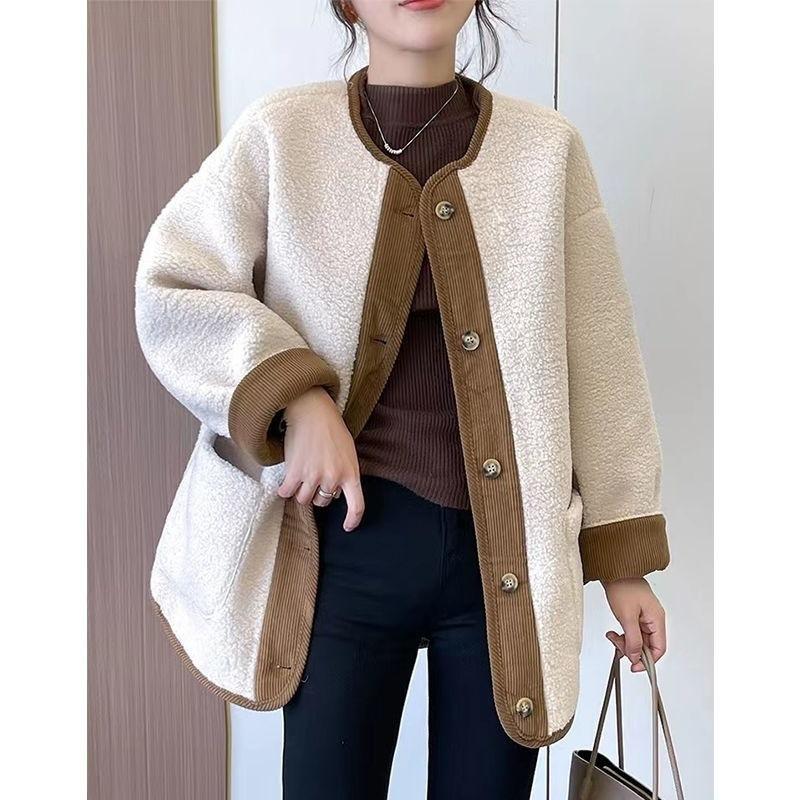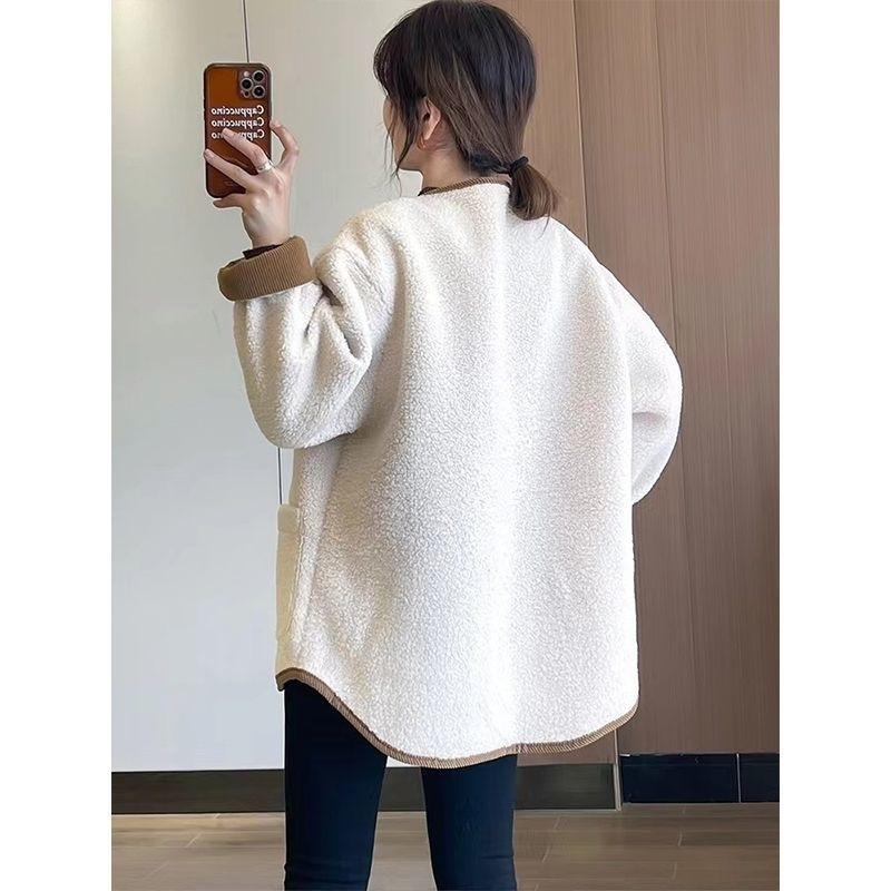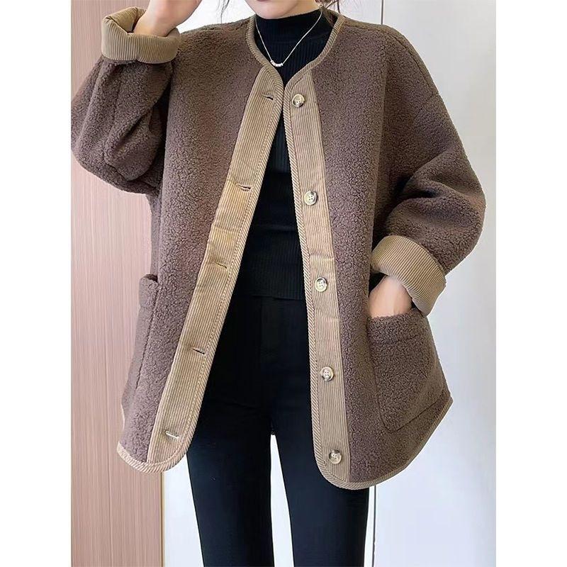 Jaqueta de Lã de Cordeiro Feminina Nova 2024 Popular Outono e Inverno Estilo Curto Celebridade Retrô High-End Espessada Jaqueta Baseball Top
