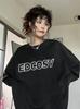 Moletom Feminino Americano Solto com Estampa de Letras Outono Inverno 2025 Gola Redonda Forrado com Lã Manga Longa Estudante Jaqueta Top Preto Lavado