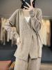 Cardigan Casaco de Tricô Caxemira Feminino Cor Sólida Novo Outono/Inverno 2025 Solto Abotoamento Simples Gola Redonda Manga Longa