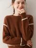 Suéter de Cashmere Pulôver Grosso Outono 2025 Solto Gola Redonda Curto Cor Contrastante Fashionável e Versátil Para o Trabalho Atacado