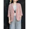 Jaqueta curta de linho chique bordada pesada com decote em V jaqueta feminina de outono