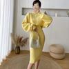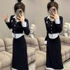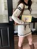 Conjunto Chanelinho estilo preppy coreano saia colete de tricô cardigã conjunto de três peças moda de ponta primavera e outono bloco de cores feminino