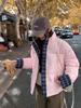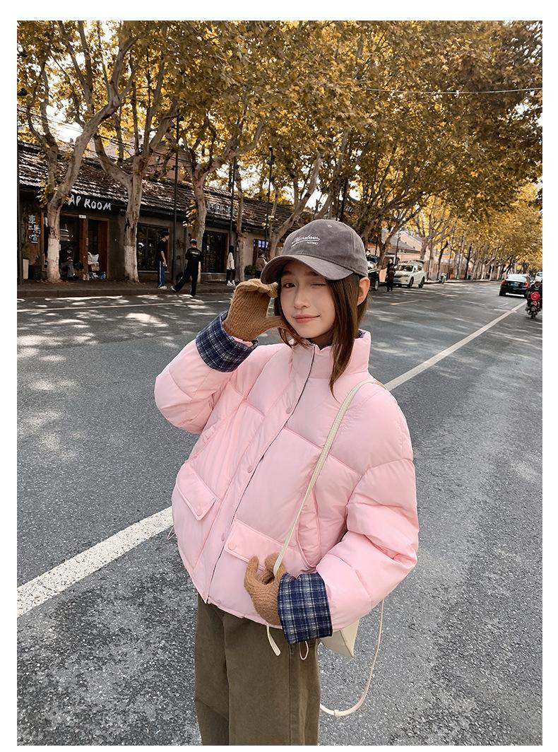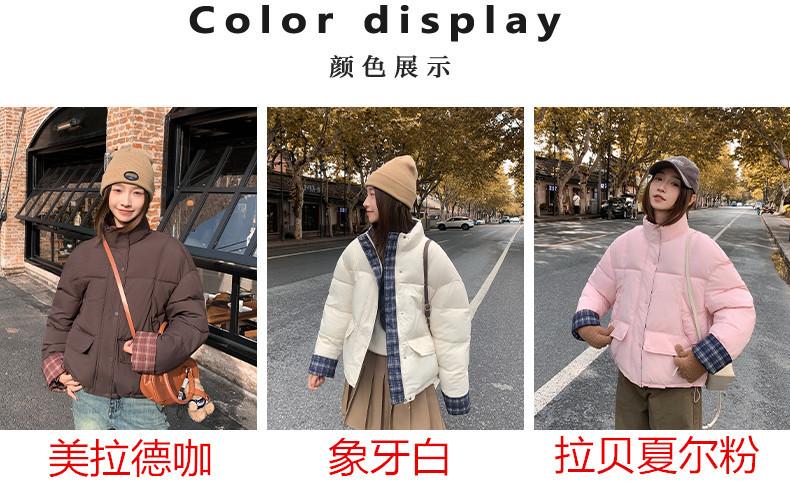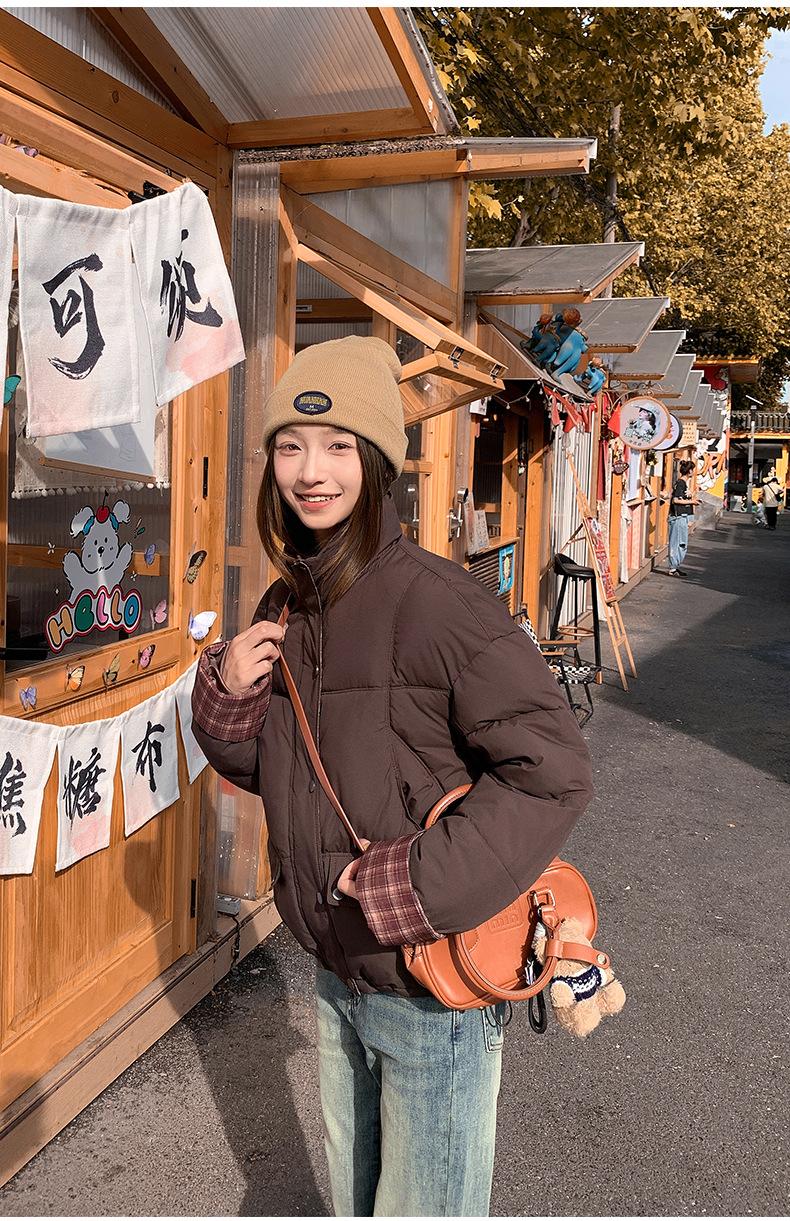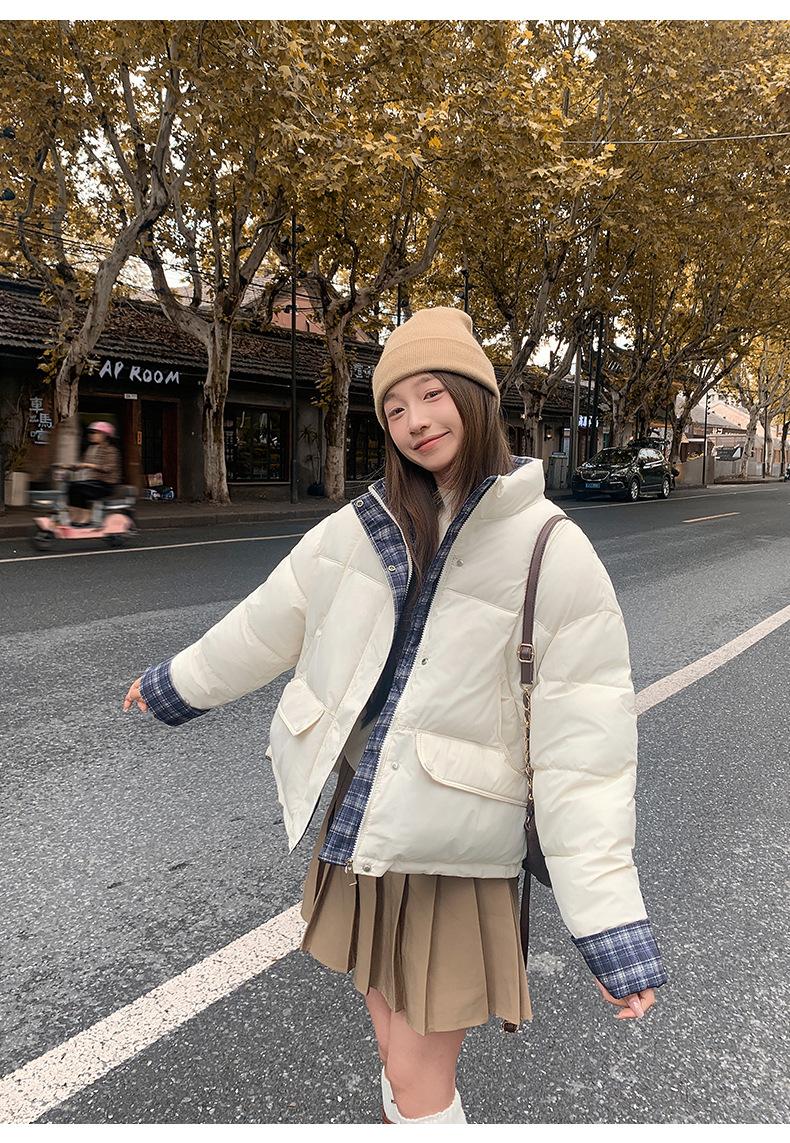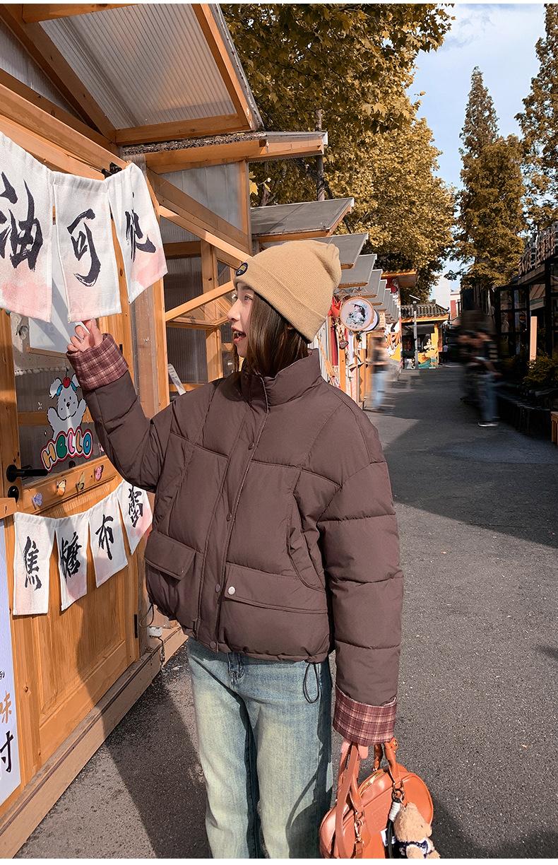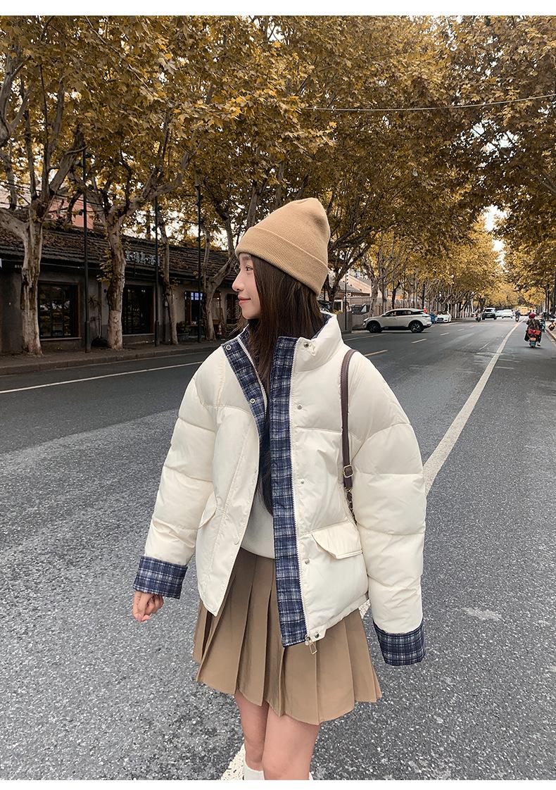 Jaqueta Xadrez de Algodão com Penas Feminina Curta 2025 Nova Outono/Inverno Tamanho Pequeno Casaco de Algodão Outerwear Top Roupas Femininas Casaco Pão