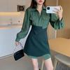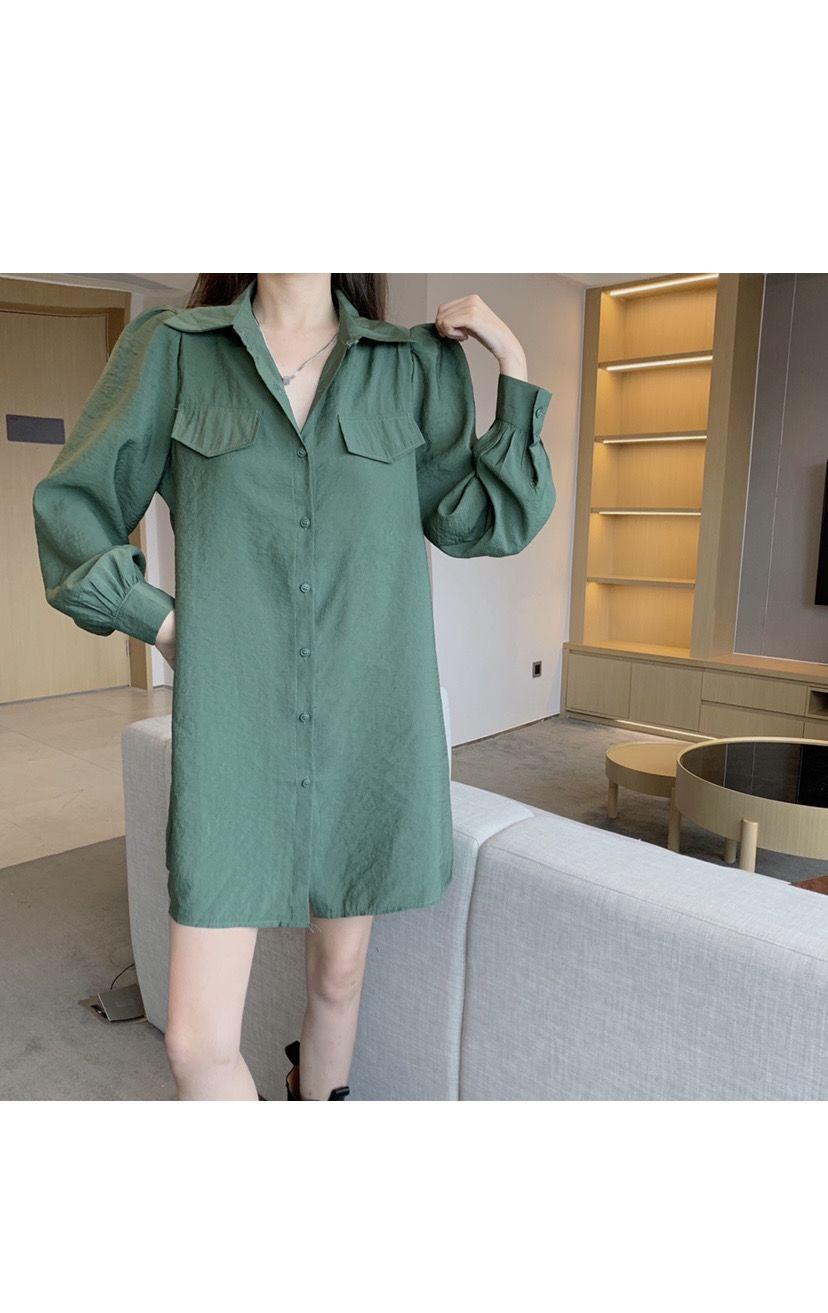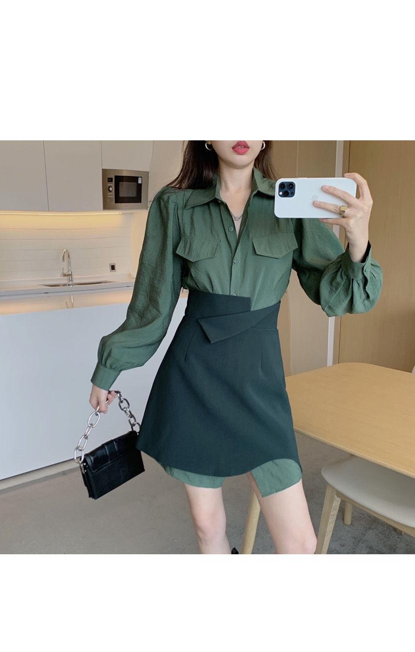 Shirt dress green + 0399 green skirt, Shirt dress white + 0399 black skirt, Shirt dress khaki + 0399 khaki ski...