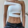 Estilo Sexy Cor Sólida Top Irregular para Mulheres 2023 Verão Novo Pequeno Sem Mangas Gola Halter Camisole