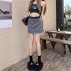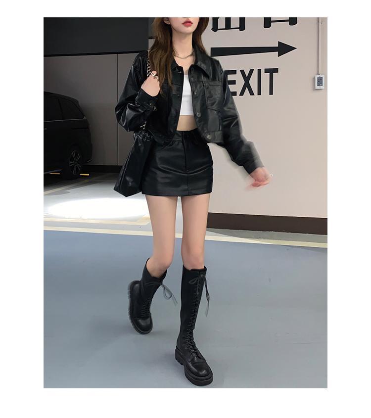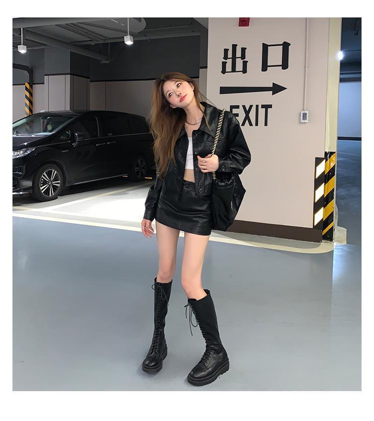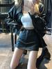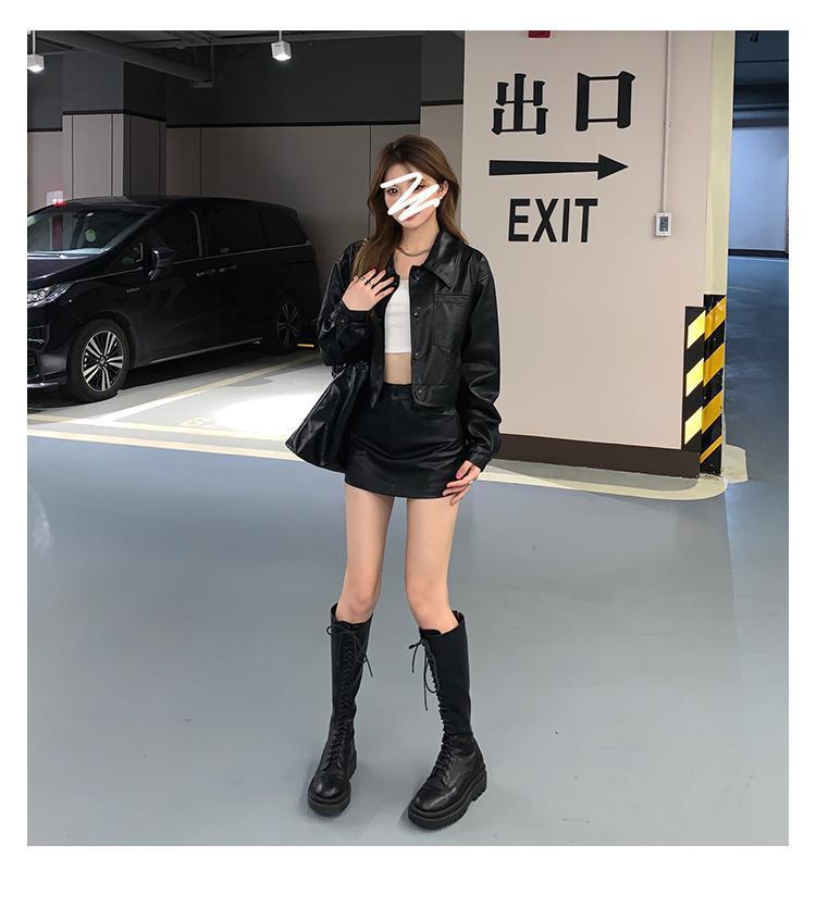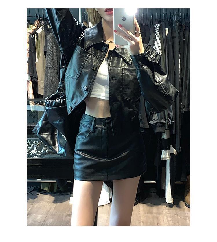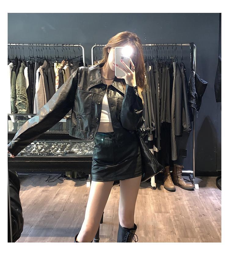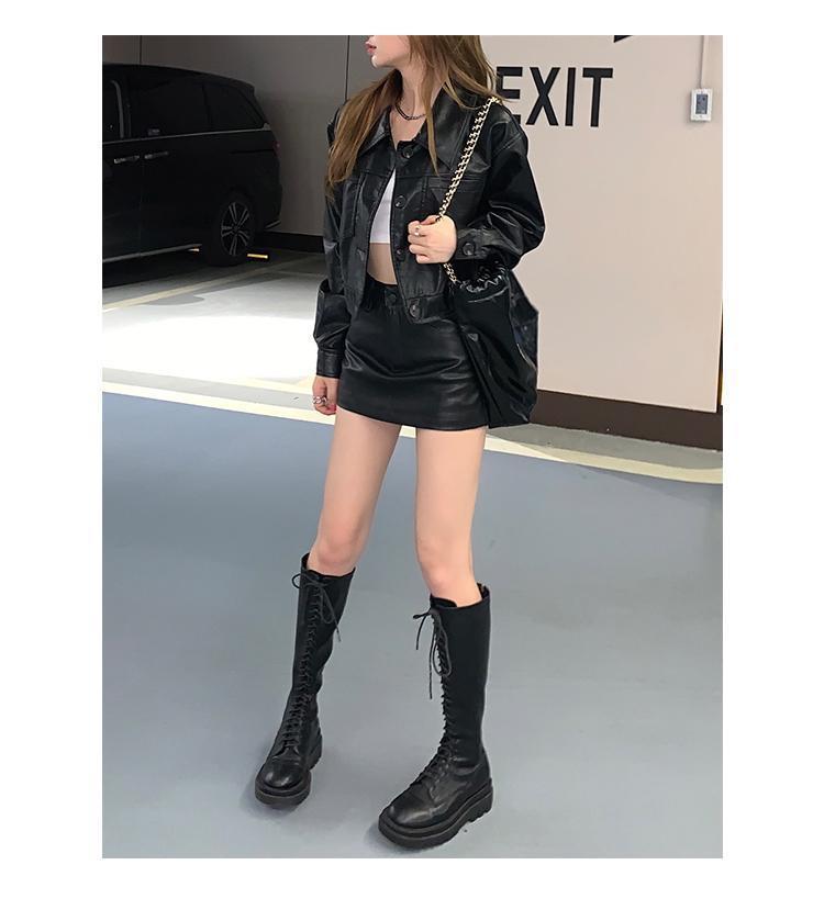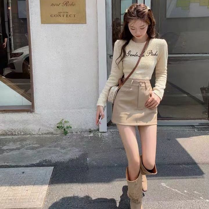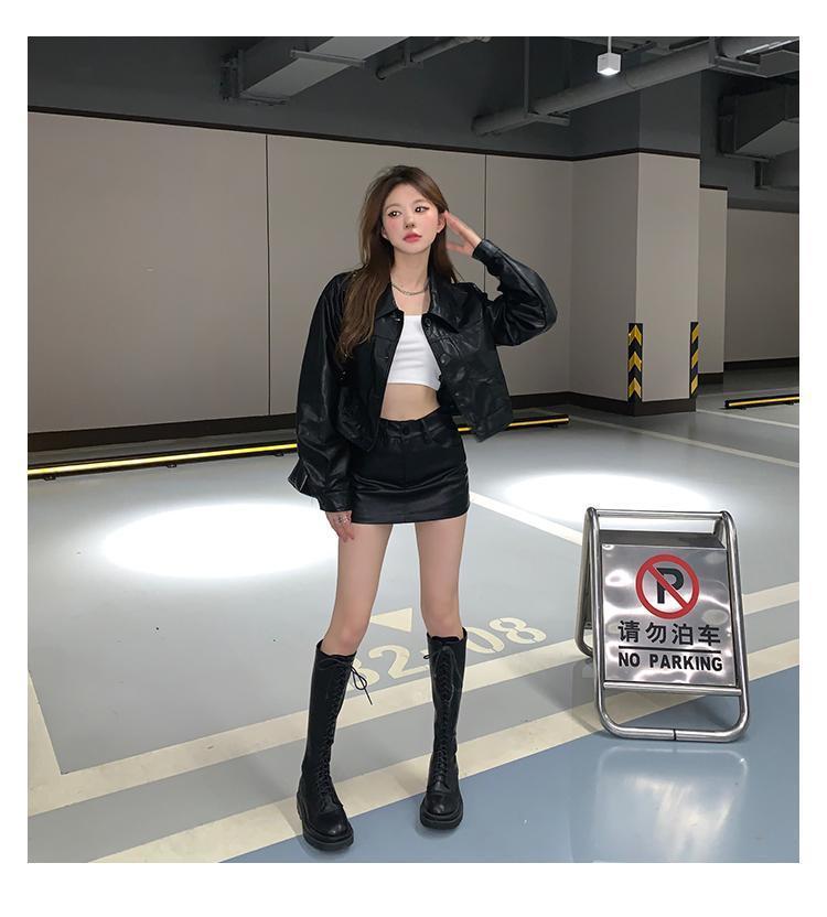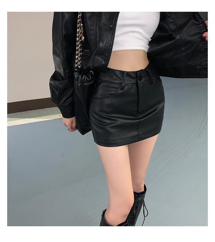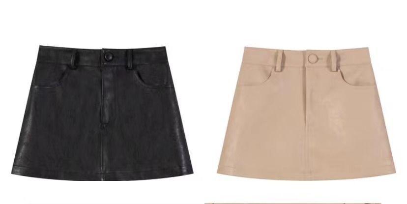 Saia midi preta de PU Shanlida Di para mulheres, outono e inverno 2025, nova, cintura alta, modeladora, evasê, justa no quadril, saia curta preta