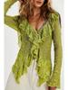Camisa de Renda Decote V Exportação Transfronteiriça Outono Nova Moda Cardigã Babados Manga Longa Top Tricotado Curto