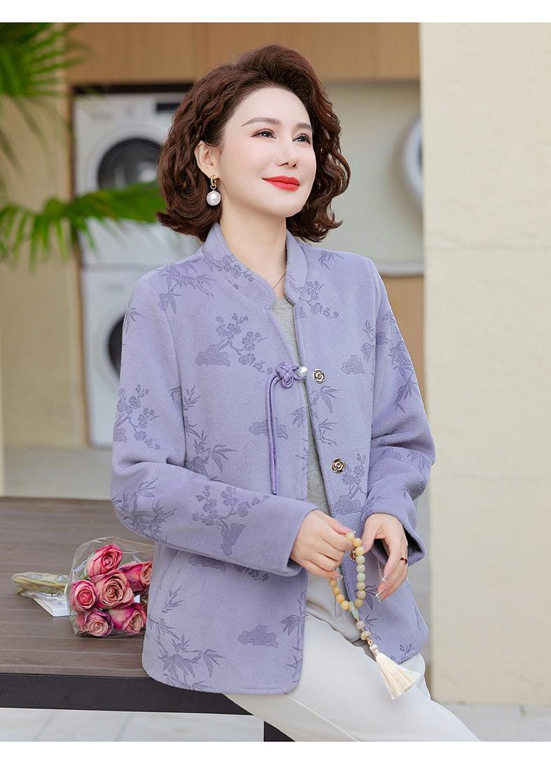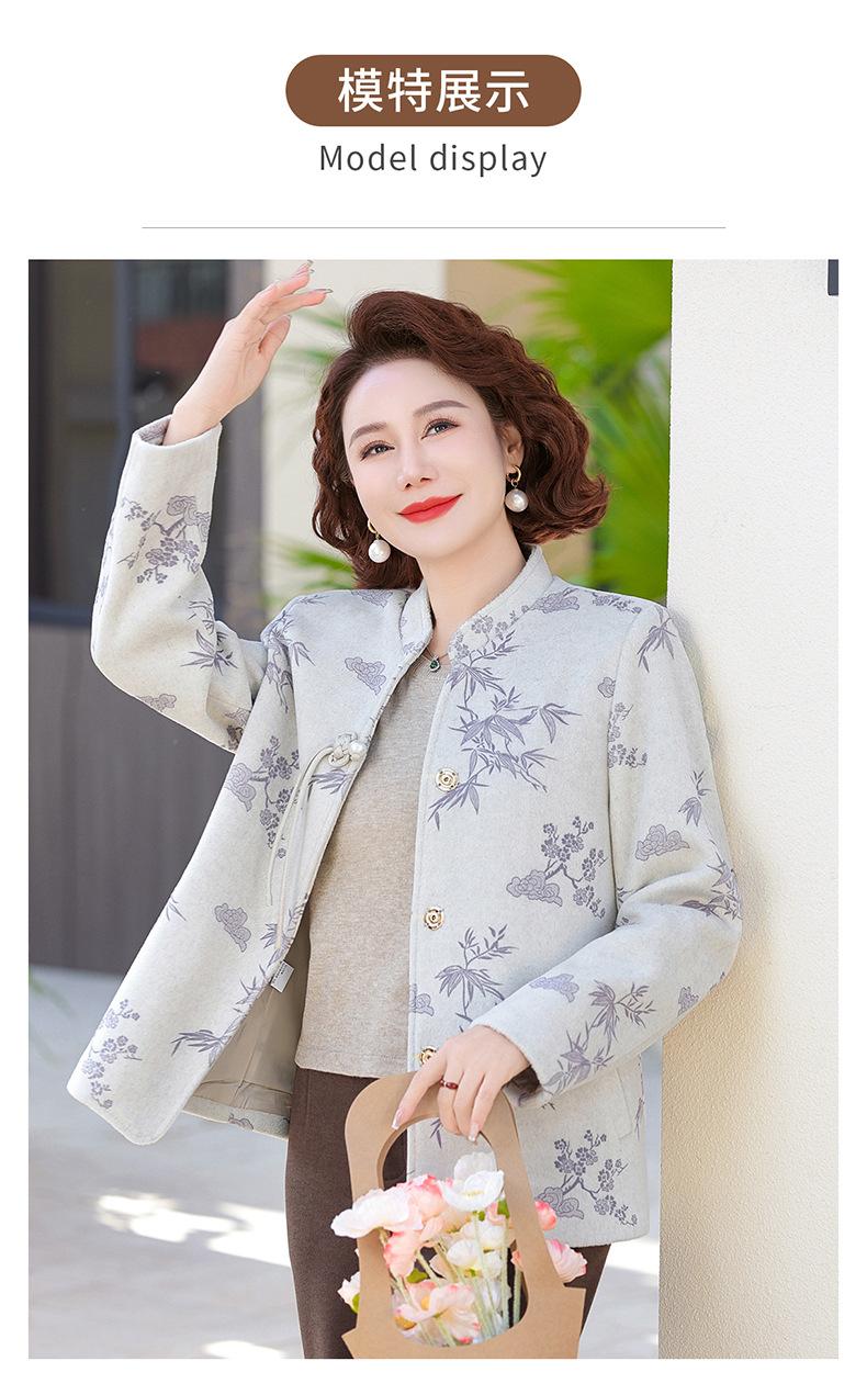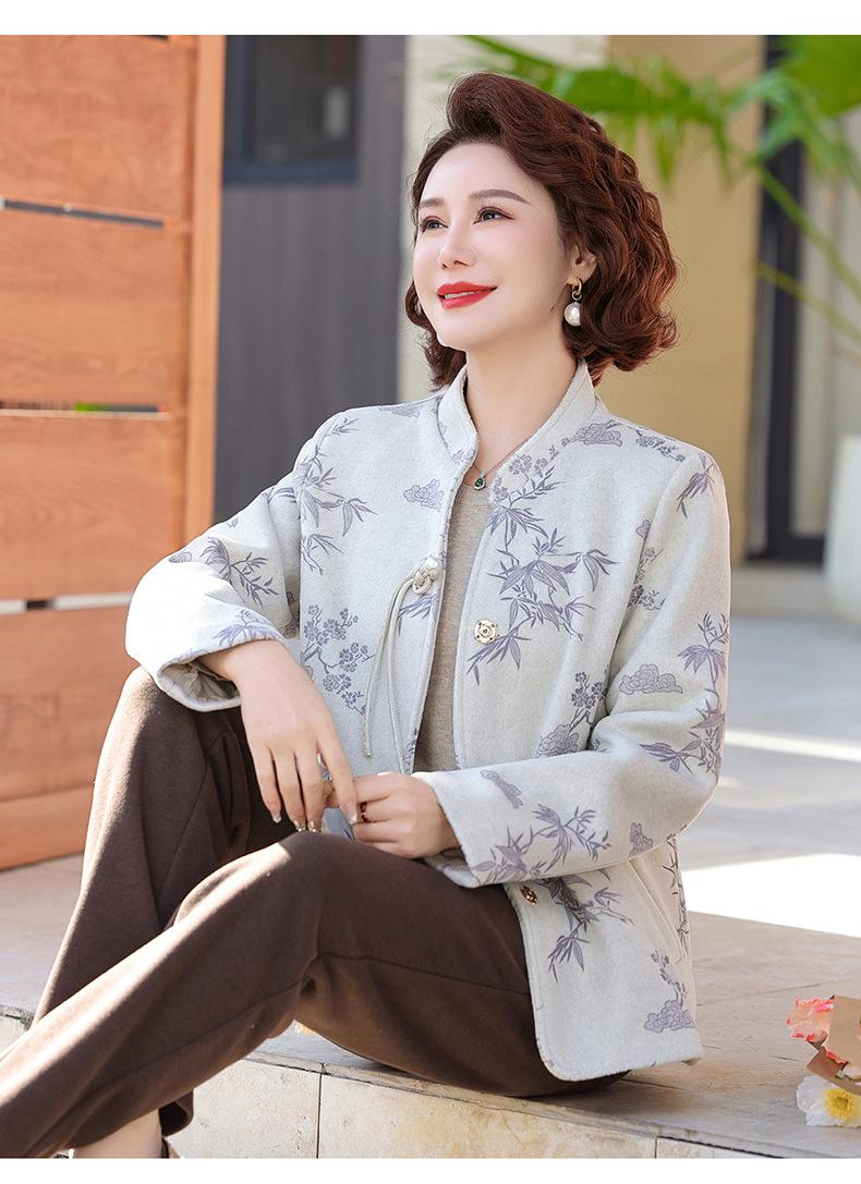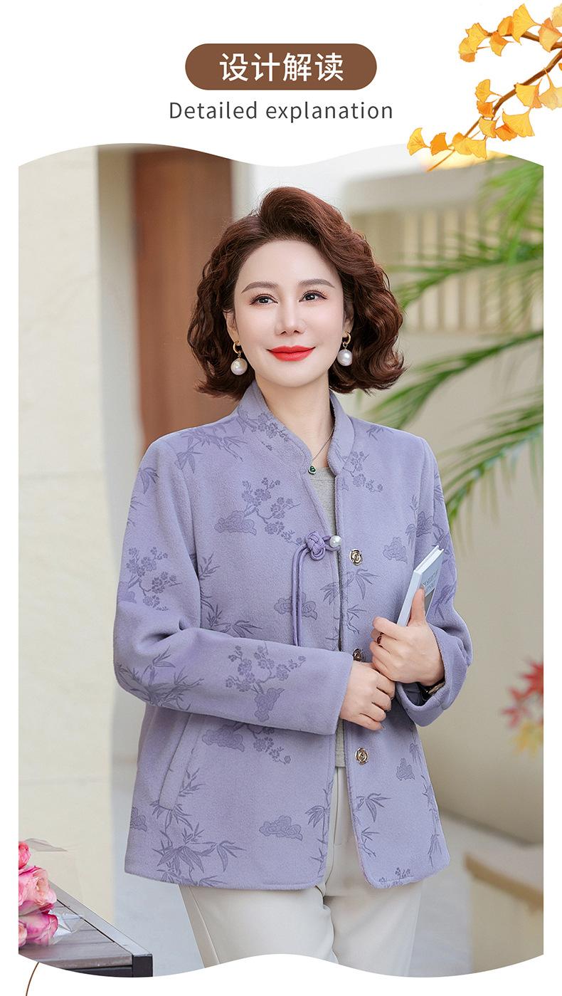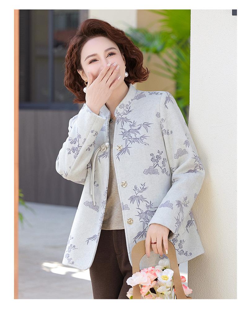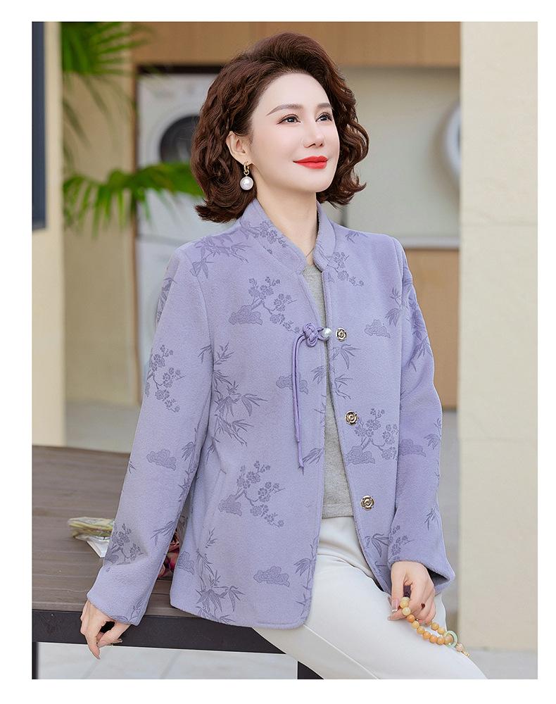 Outwear de Outono para Mães Gola Alta Chinesa Nobre Mulheres de Meia-Idade e Idosas Primavera e Outono 2025 Novo Estilo Top de Lã da Moda