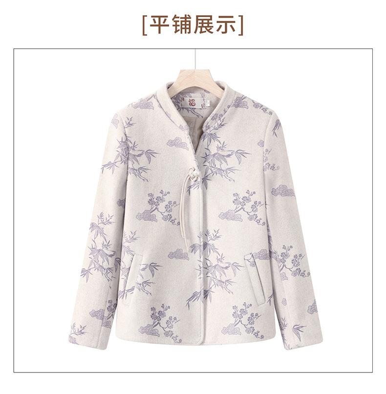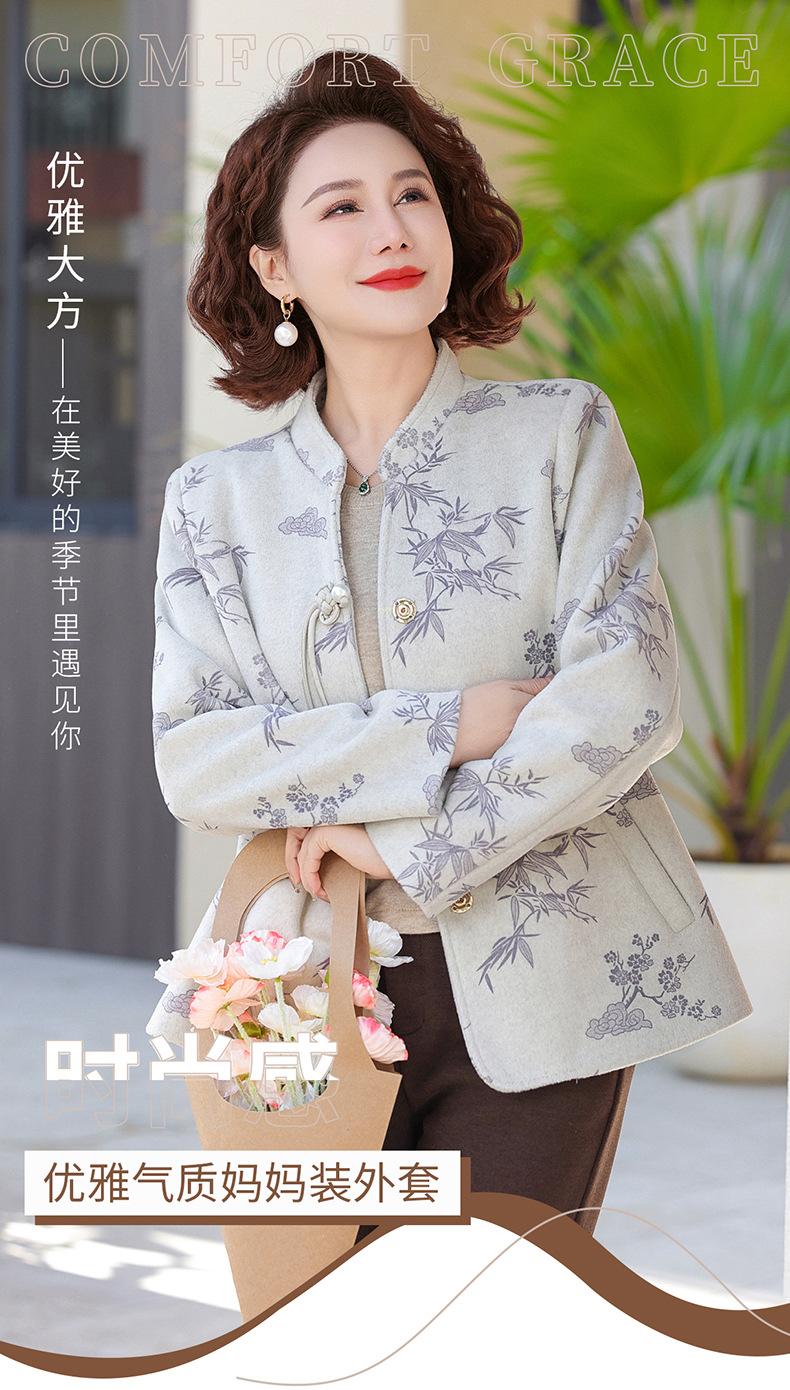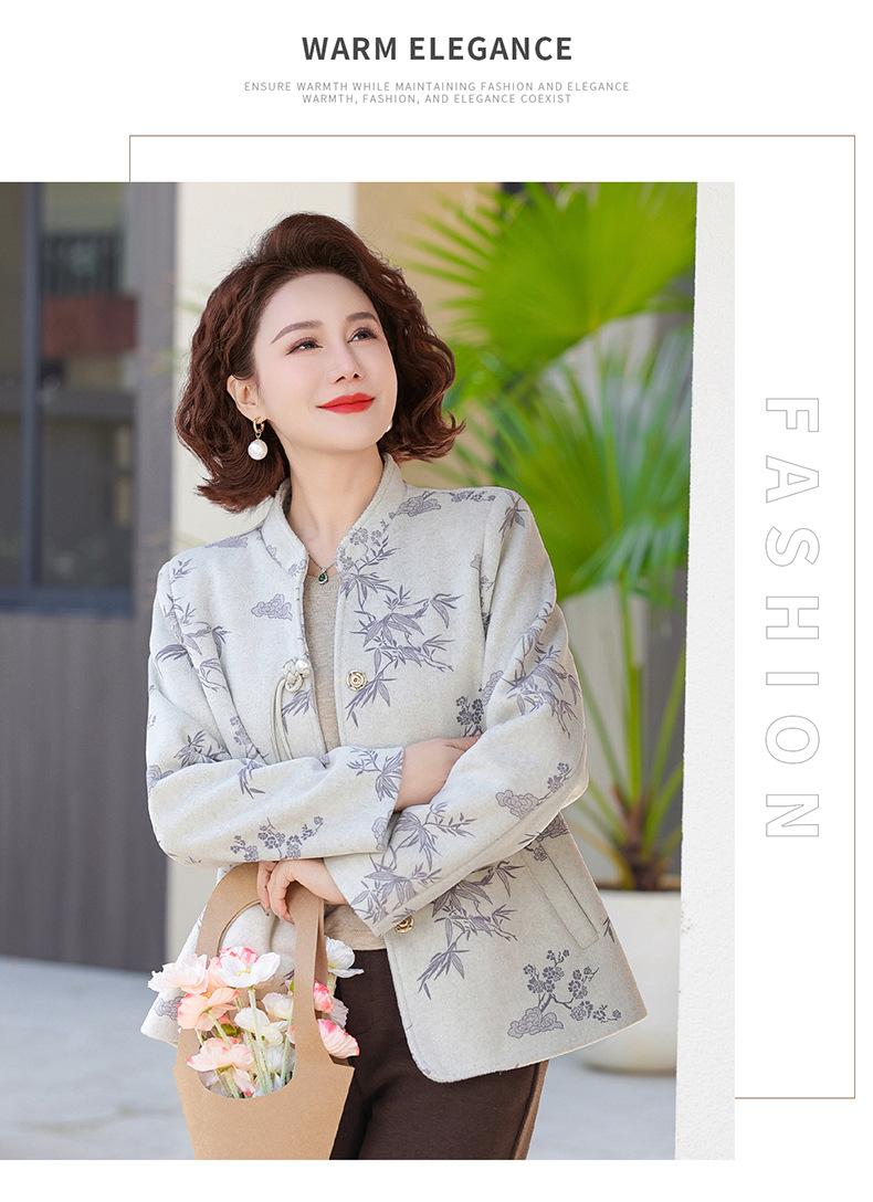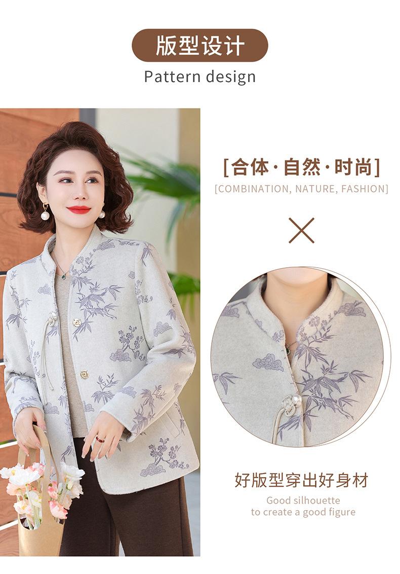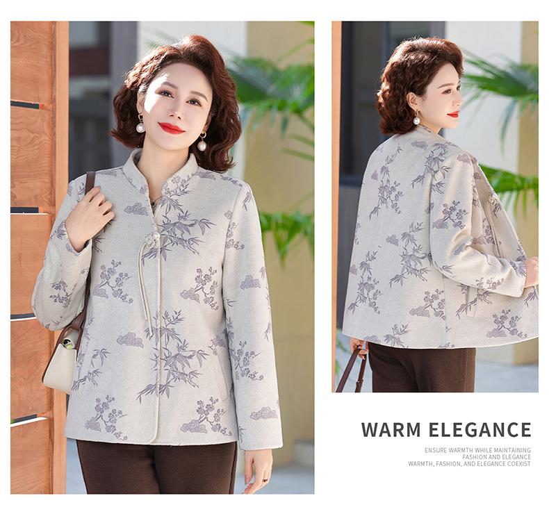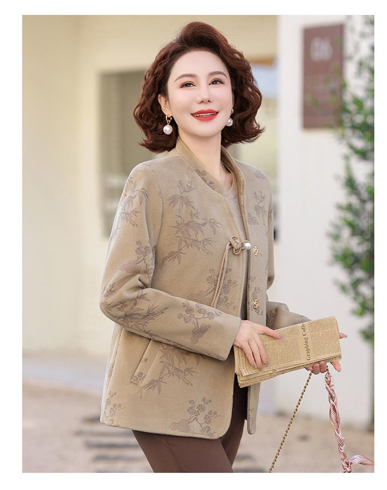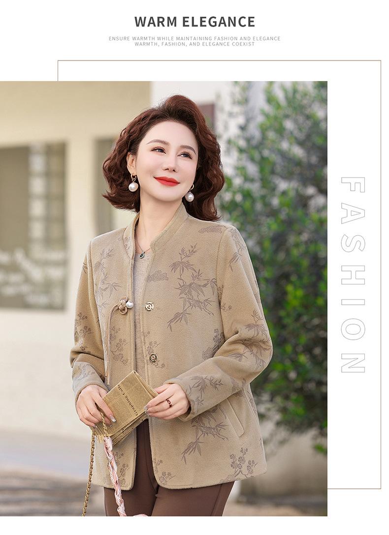 Outwear de Outono para Mães Gola Alta Chinesa Nobre Mulheres de Meia-Idade e Idosas Primavera e Outono 2025 Novo Estilo Top de Lã da Moda