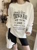 Camiseta de Algodão Puro Outono Feminina Manga Longa High-End 2025 Nova Gola Redonda Solta Estampada com Letras Tendência