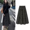 Falda Floral Negra Estilo Francés para Mujer 2025 Primavera y Verano Nueva Cintura Alta Adelgazante Cubre Caderas Falda Cintura Alta Línea A Largo Medio