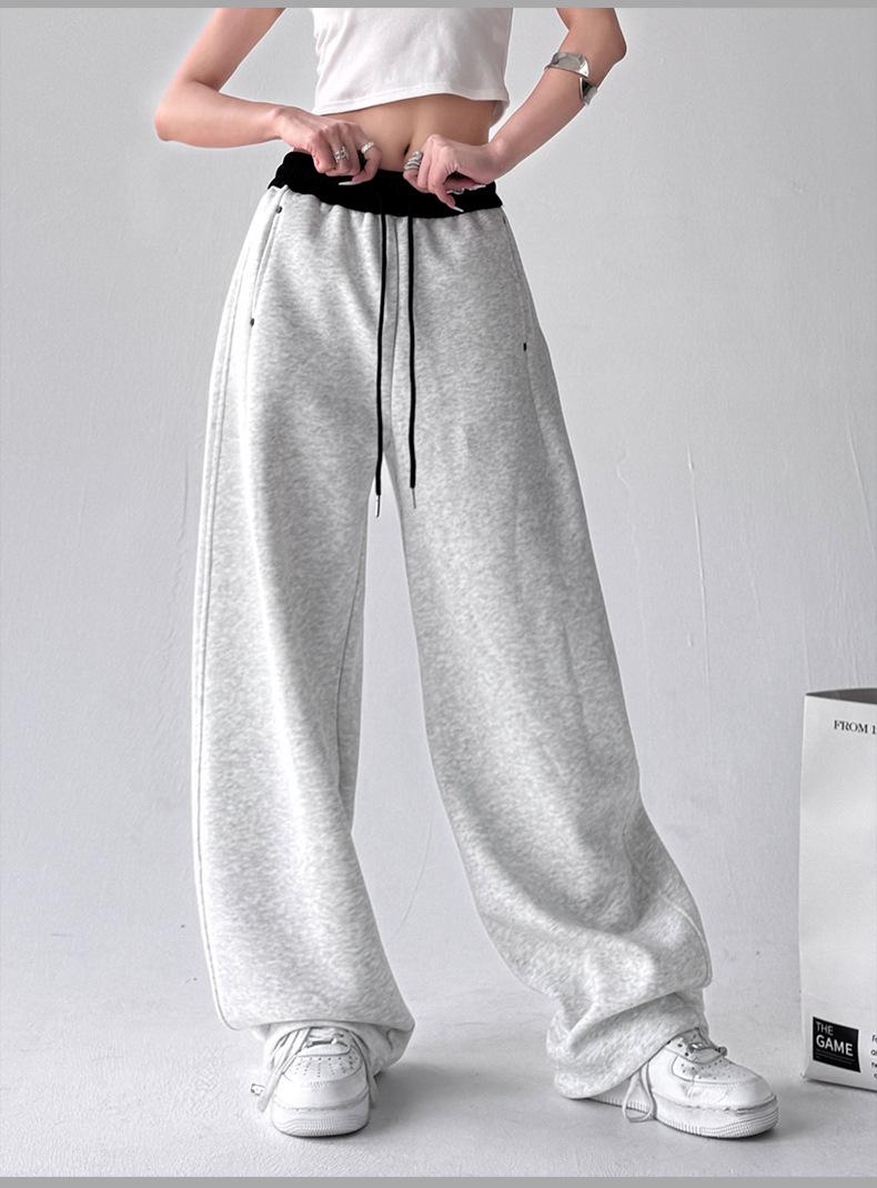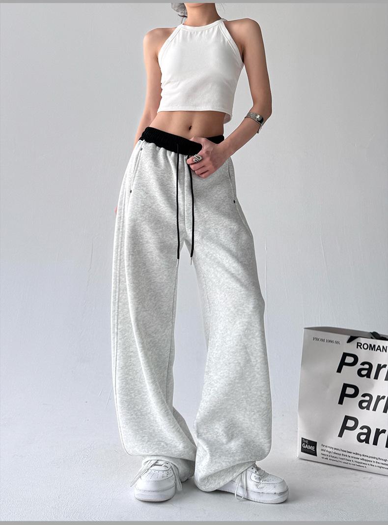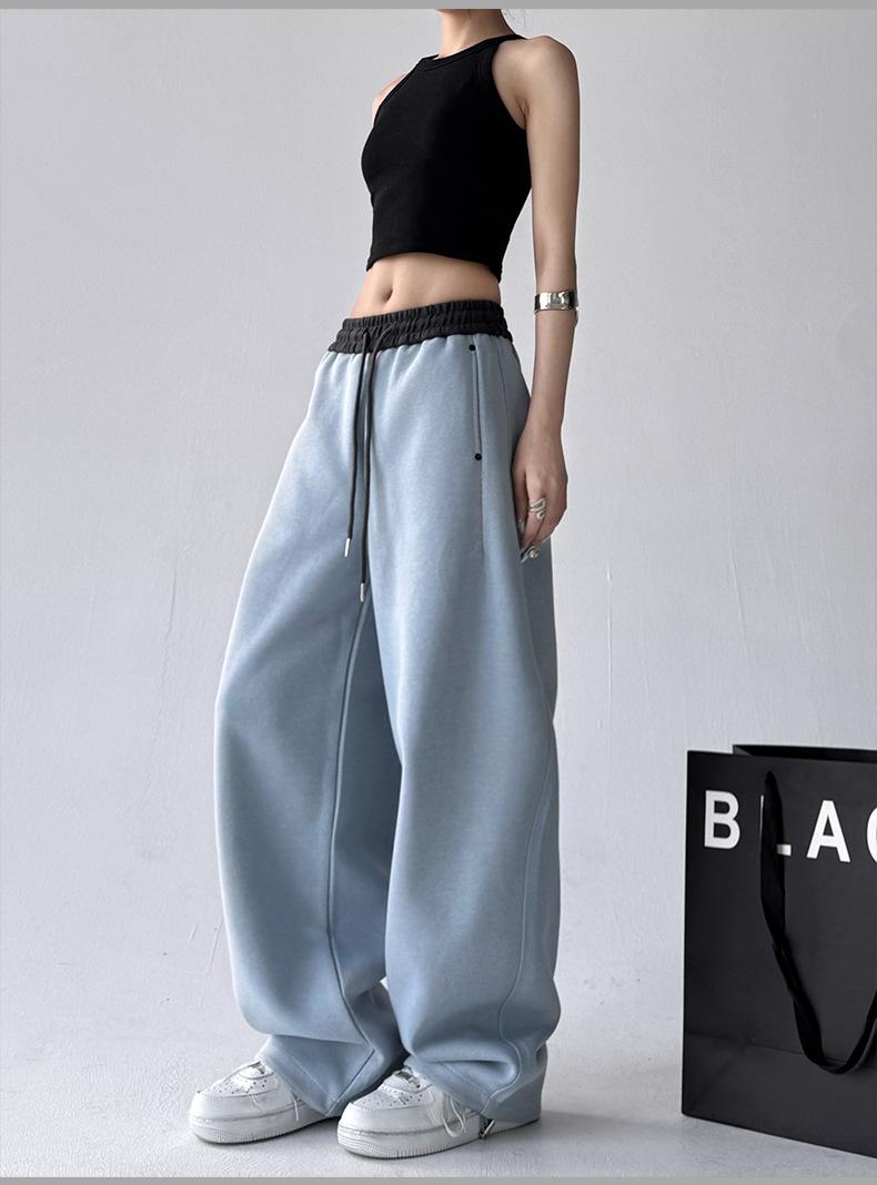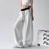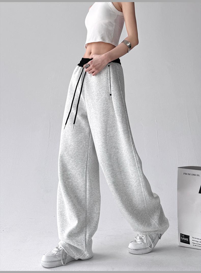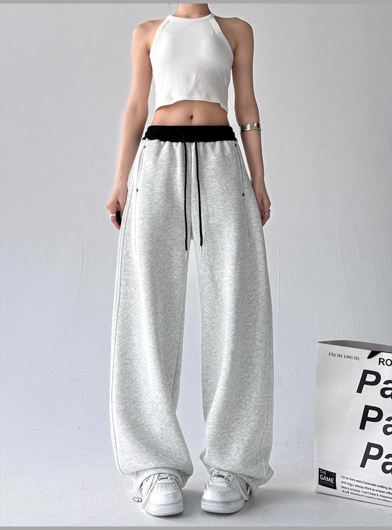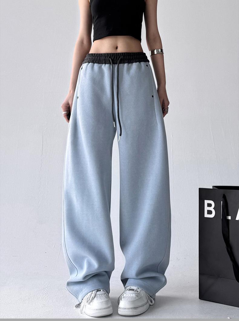 Calças Casuais Femininas com Emenda na Cintura da Moda Primavera 2025, Cintura Elástica, Cintura Alta, Calças de Perna Reta, Calças de Moletom Versáteis de Perna Larga