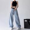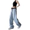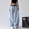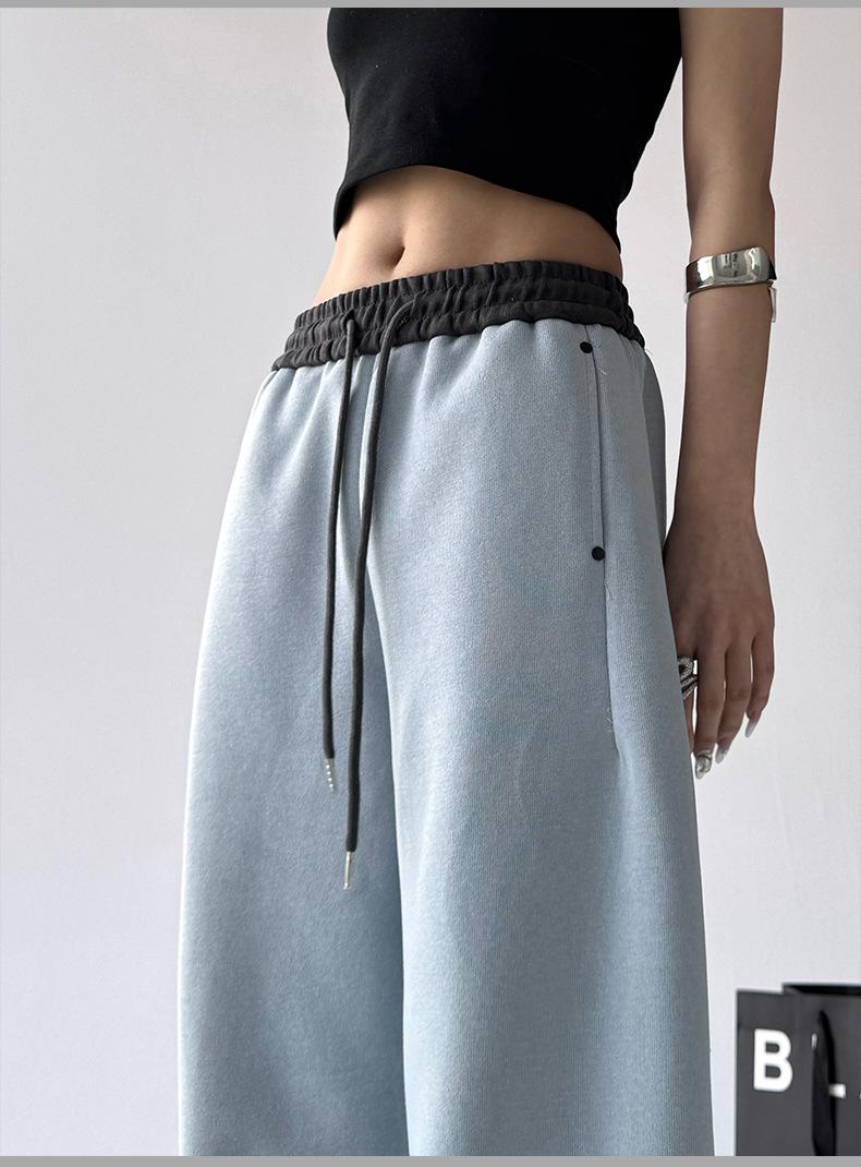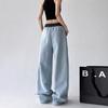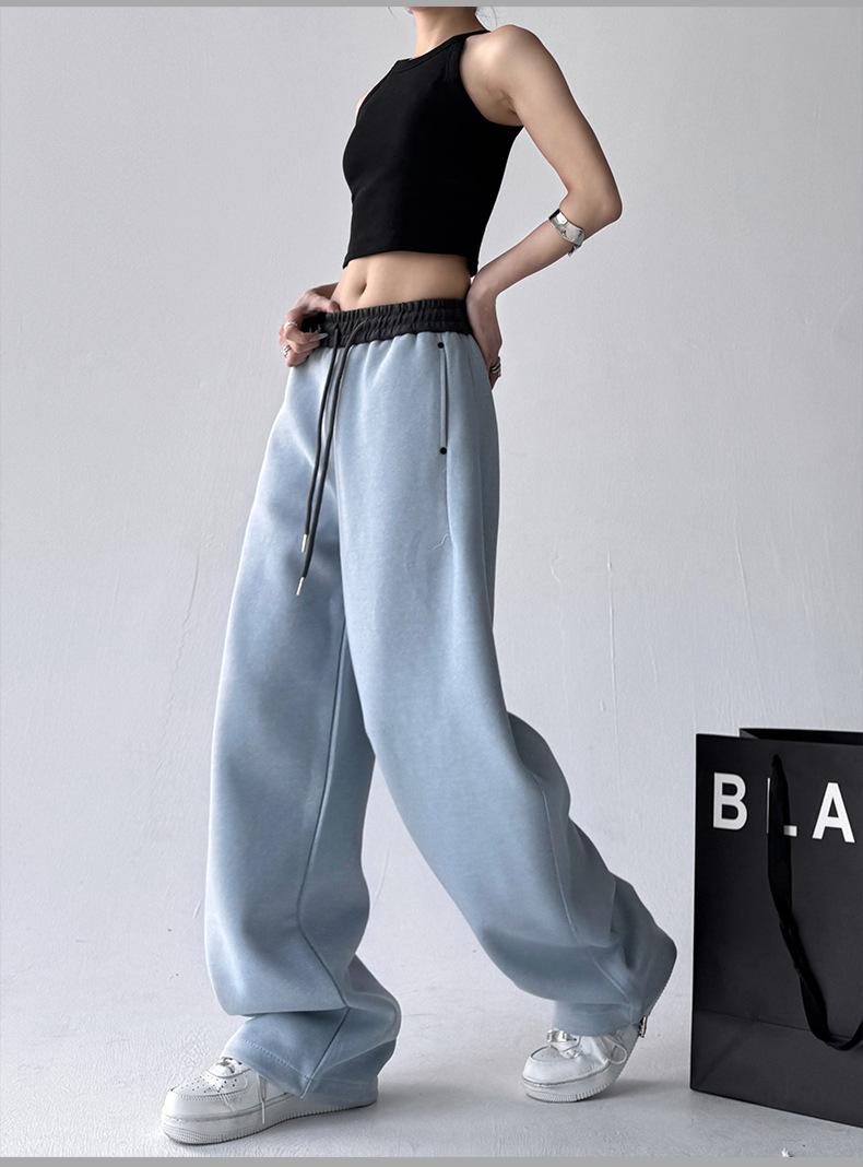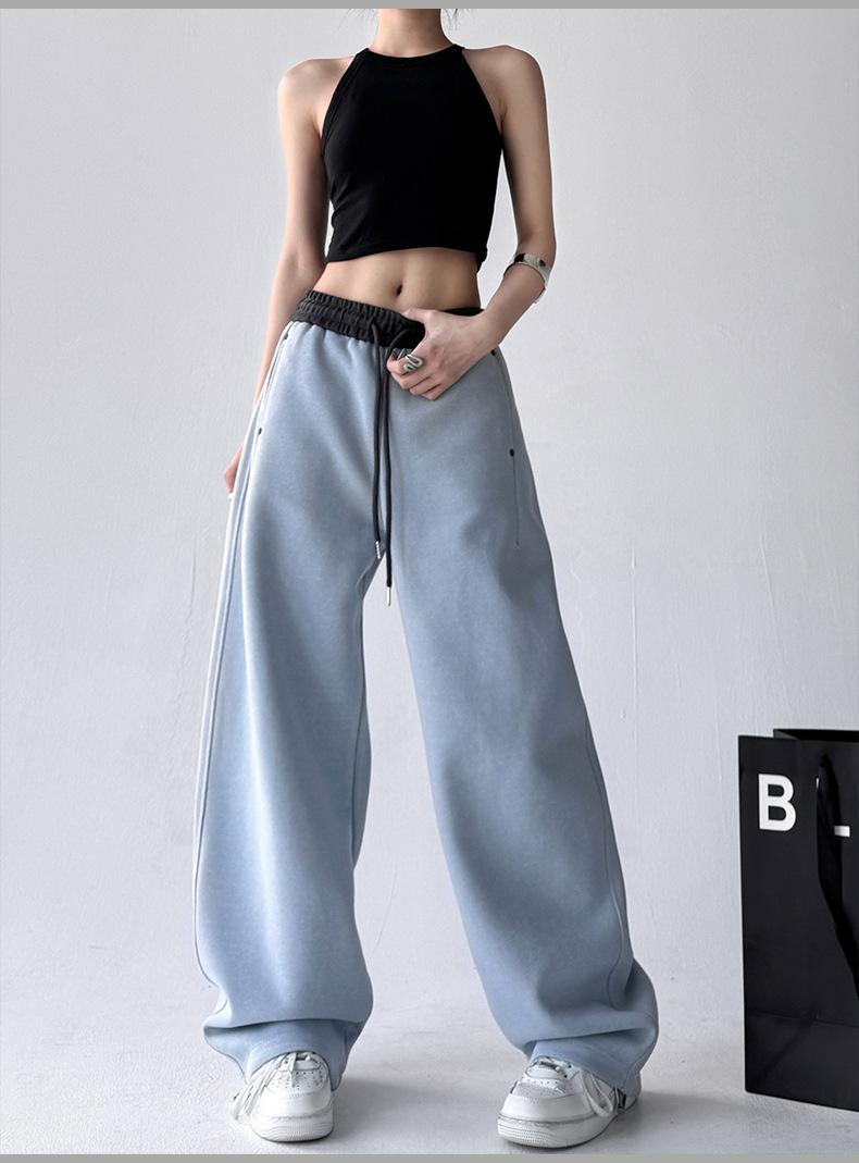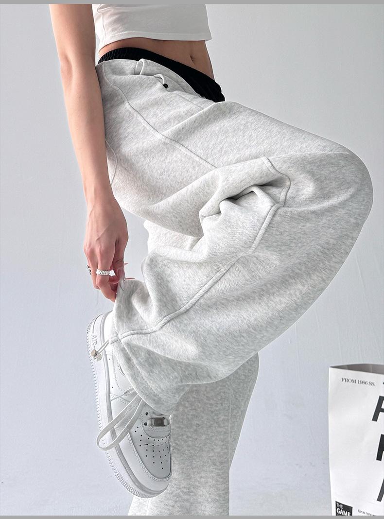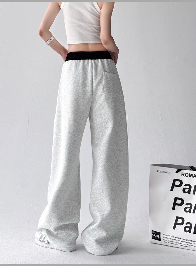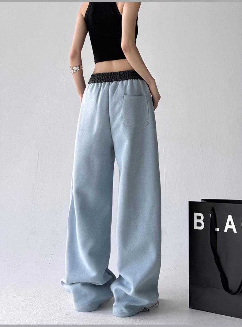 Calças Casuais Femininas com Emenda na Cintura da Moda Primavera 2025, Cintura Elástica, Cintura Alta, Calças de Perna Reta, Calças de Moletom Versáteis de Perna Larga