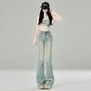 Jeans Jacquard Micro-lam de Cor Clara Feminino Primavera e Outono 2025 Novo Cintura Alta Sem Perna Curto Calças Flare Ferradura