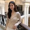 Nova Camada Base de Tricô de Caxemira Outono/Inverno Macia Confortável Solta Emagrecedora Decote Tesoura Amarrar Tricô de Cabo Feminina