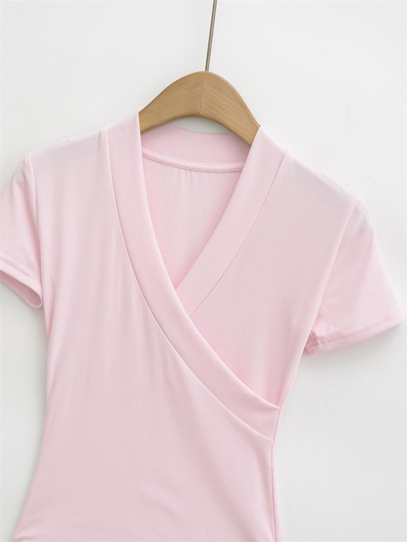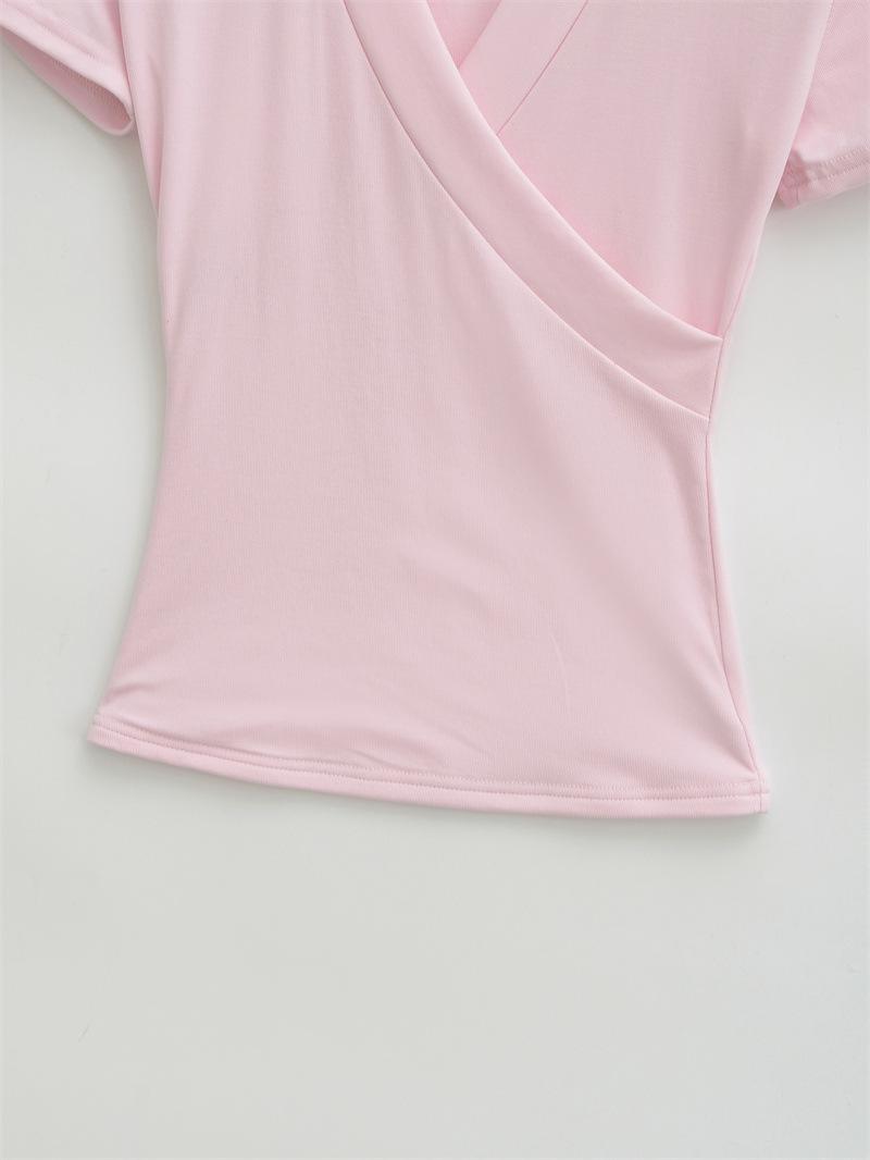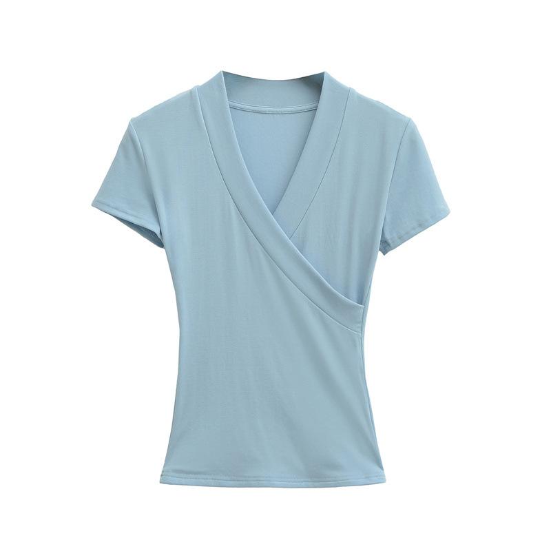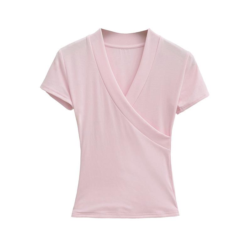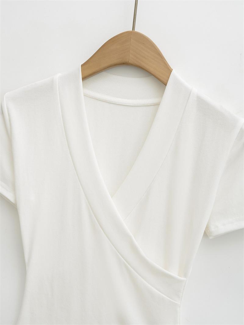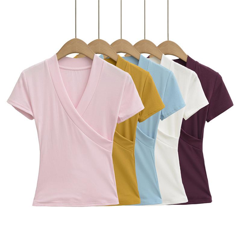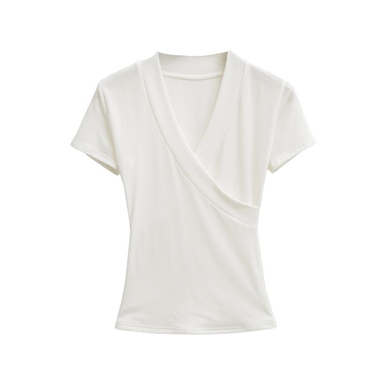 Camiseta Estilo Pure Desire Decote V Cintura Cruzada Manga Curta Verão Nova Versátil Ajuste Slim Top Hot Girl para Mulheres