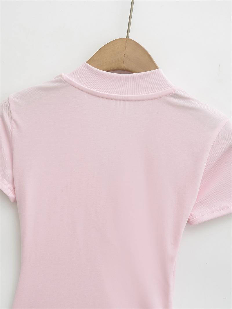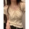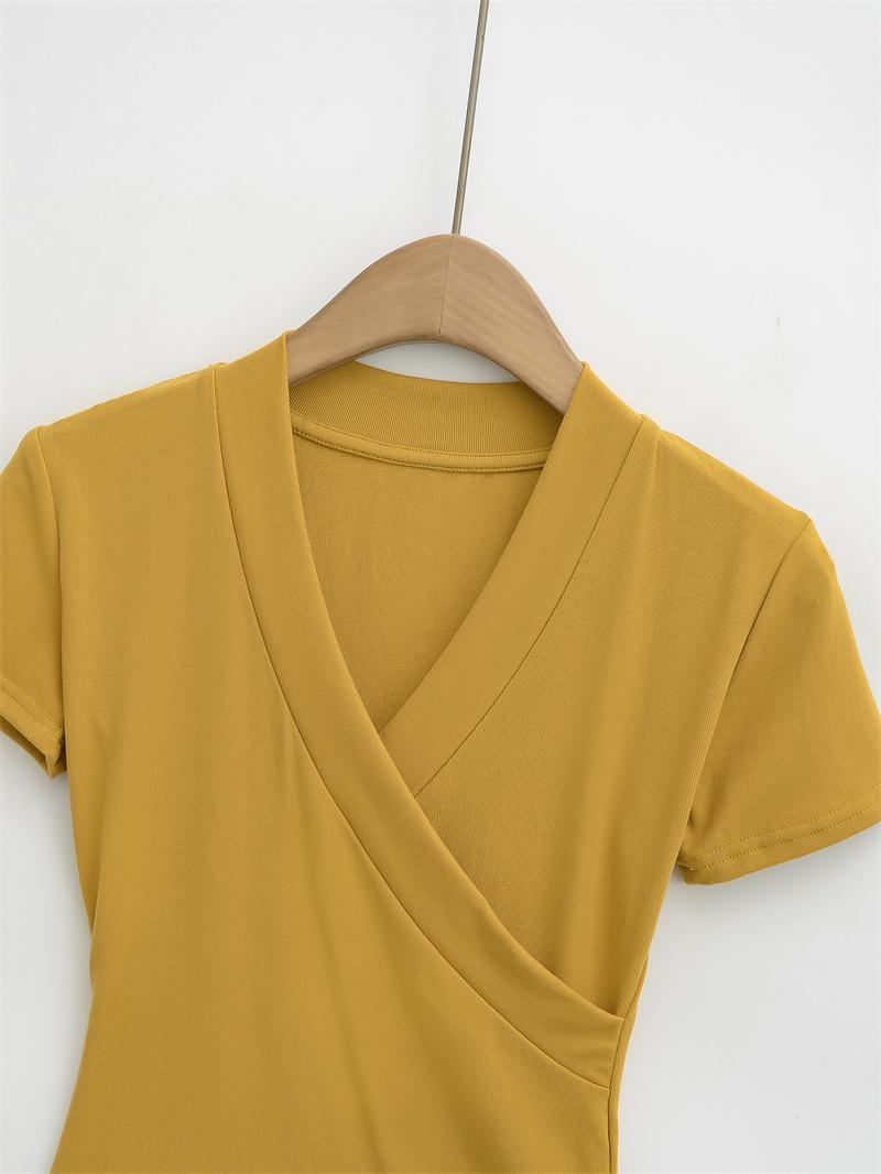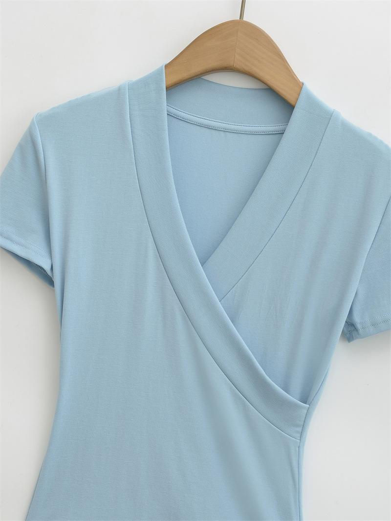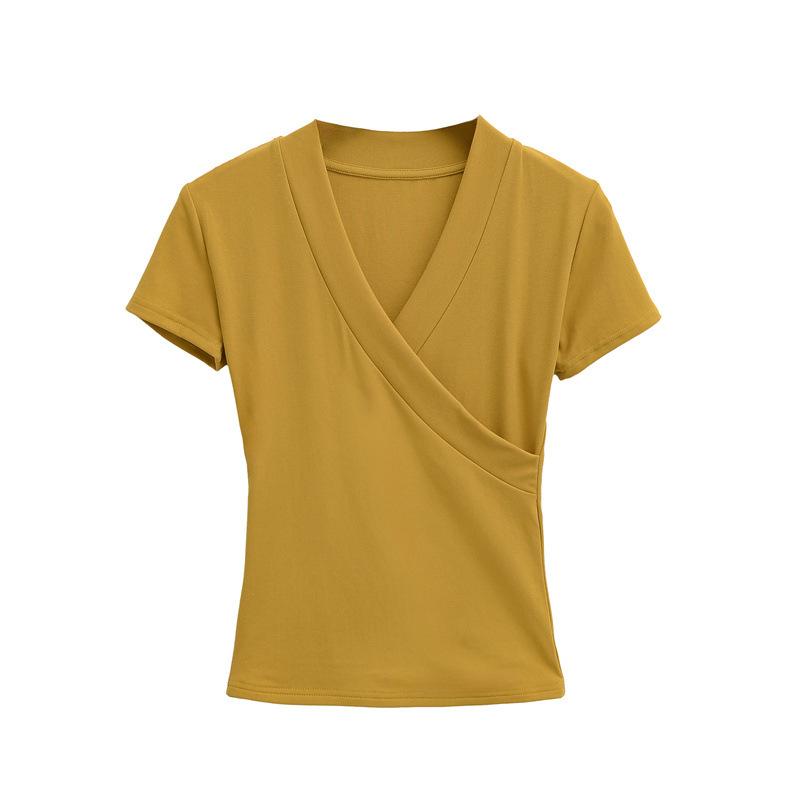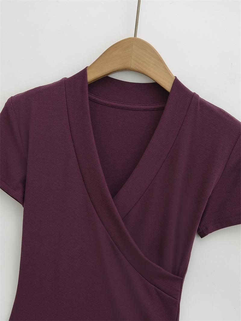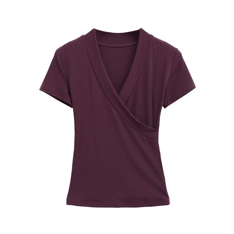Camiseta Estilo Pure Desire Decote V Cintura Cruzada Manga Curta Verão Nova Versátil Ajuste Slim Top Hot Girl para Mulheres