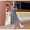 Saia xadrez retrô feminina primavera e outono cintura alta solta emagrecimento casual a-line comprimento midi saia bolo estilo preguiçoso meia saia
