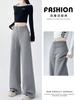 Calças de Moletom Femininas Cinzas Slim-Fit para Primavera e Outono, Cintura Larga, Calças de Yoga Casuais Soltas, Calças Drapeadas de Perna Reta Comprimento Total de Perna Larga