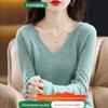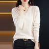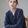 Tricô Feminino Decote V Lã 100% Feminino Outono/Inverno Nova Moda Casual Cor Sólida Tricô Solto Suéter Base Feminino