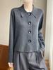 Casaco de Lã com Lapela e Botão Grande Outono e Inverno Novo Solto Versátil Cor Sólida Simples Terno Suéter Cardigã