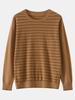 2025 Novo Suéter de Lã Feminino de Gola Redonda Listrado, Confortável, Simples, Solto e Moderno, Amigo da Pele