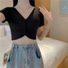 Estilo Americano Garota Quente Ombro U-Decote Ajustado Slim Camiseta de Manga Curta Verão Combinação Total Nicho Ins Estilo Puro Top Sexy