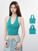 Regata de Tricô com Gola Halter Feminina Verão Roupa Externa Slim Costas Quentes Sem Mangas Top Curto 2025