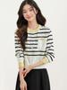 Suéter Gola Redonda Feminino Primavera Cardigã Tricotado de Botão Único Listrado Estilo College Casual Curto Combinando Cores Solto Versão Coreana