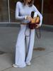 Conjunto de Duas Peças 2025 Roupas de Trabalho Europeias e Americanas para Mulheres Tops Versáteis Slim de Manga Longa Calças Casuais e Confortáveis Calças Largas de Cintura Alta