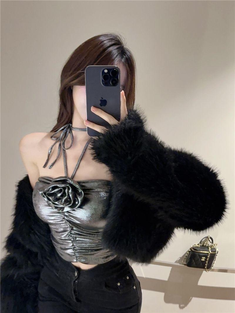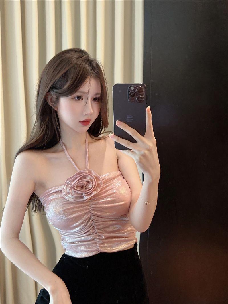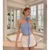 [Atacado Transfronteiriço] Top Tubinho Halterneck, Look Doce Sexy Emagrecedor Floral Bottoming Top Sem Mangas