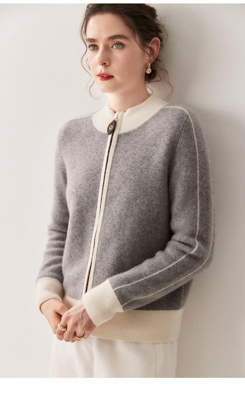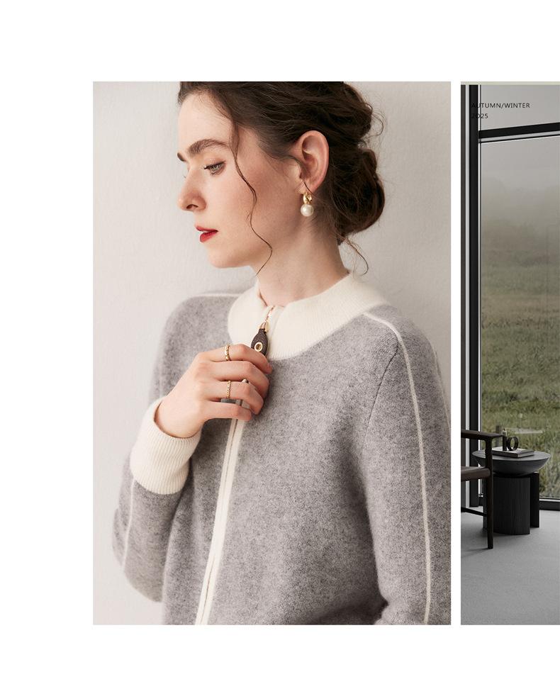 Cardigã de Caxemira Gola Redonda Feminino Novo Temperamento Retrô Emagrecimento Casaco Tricotado