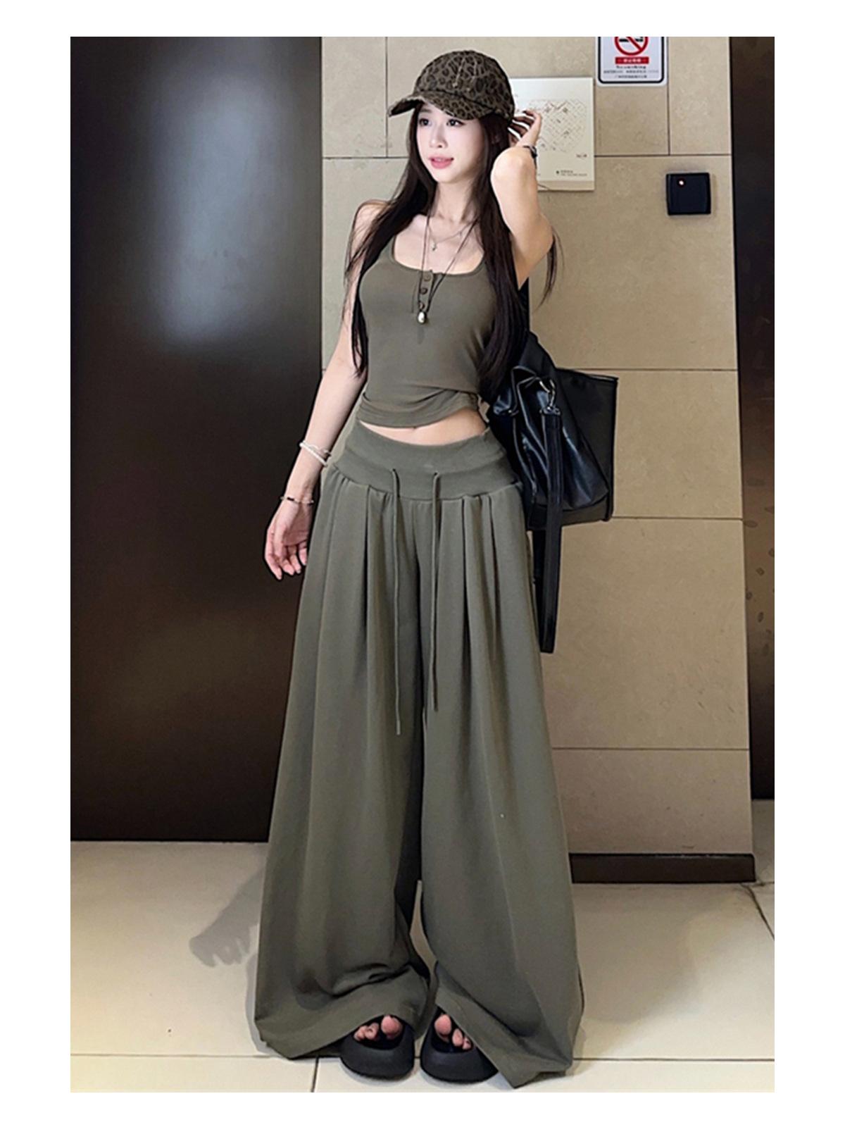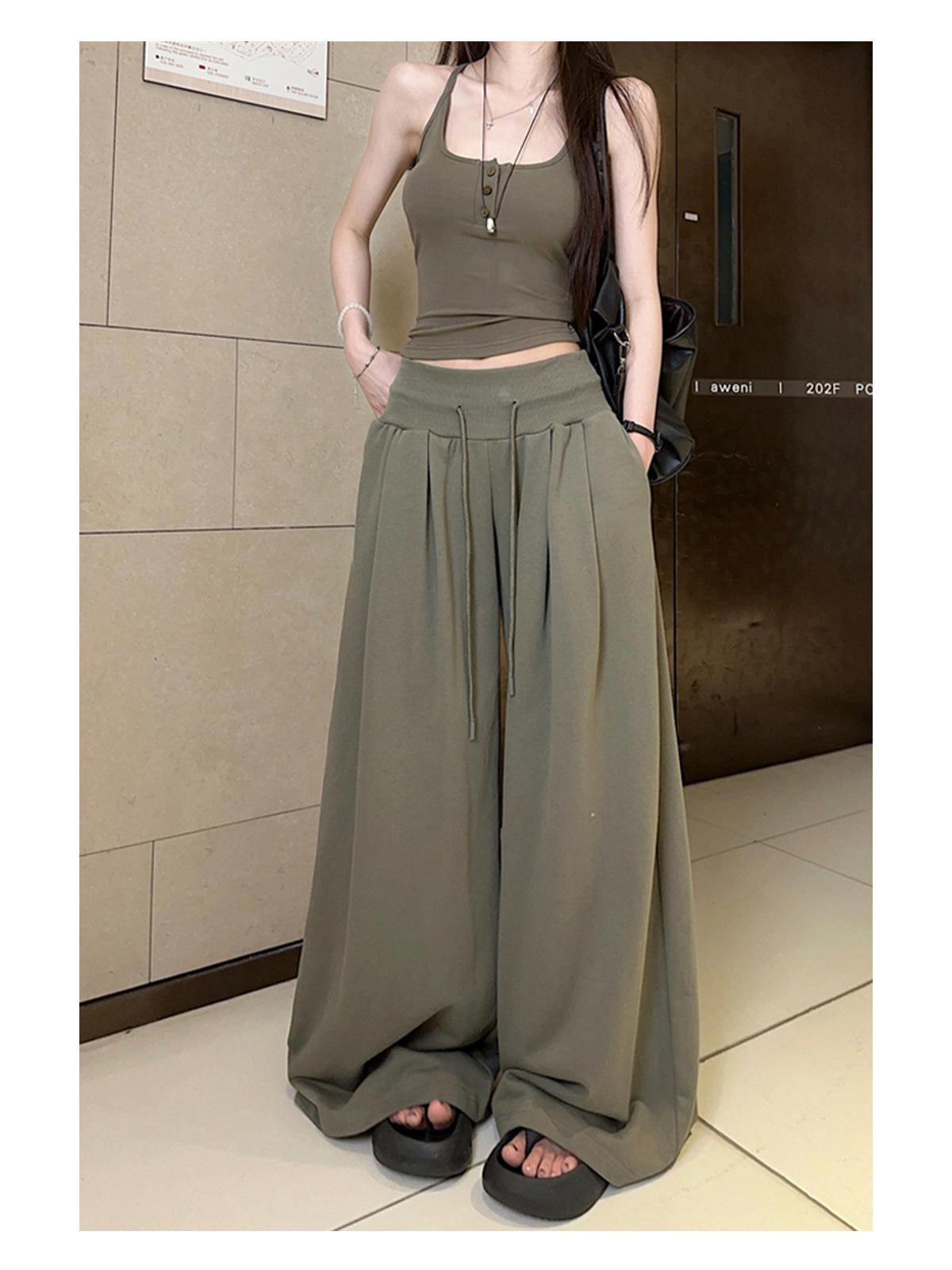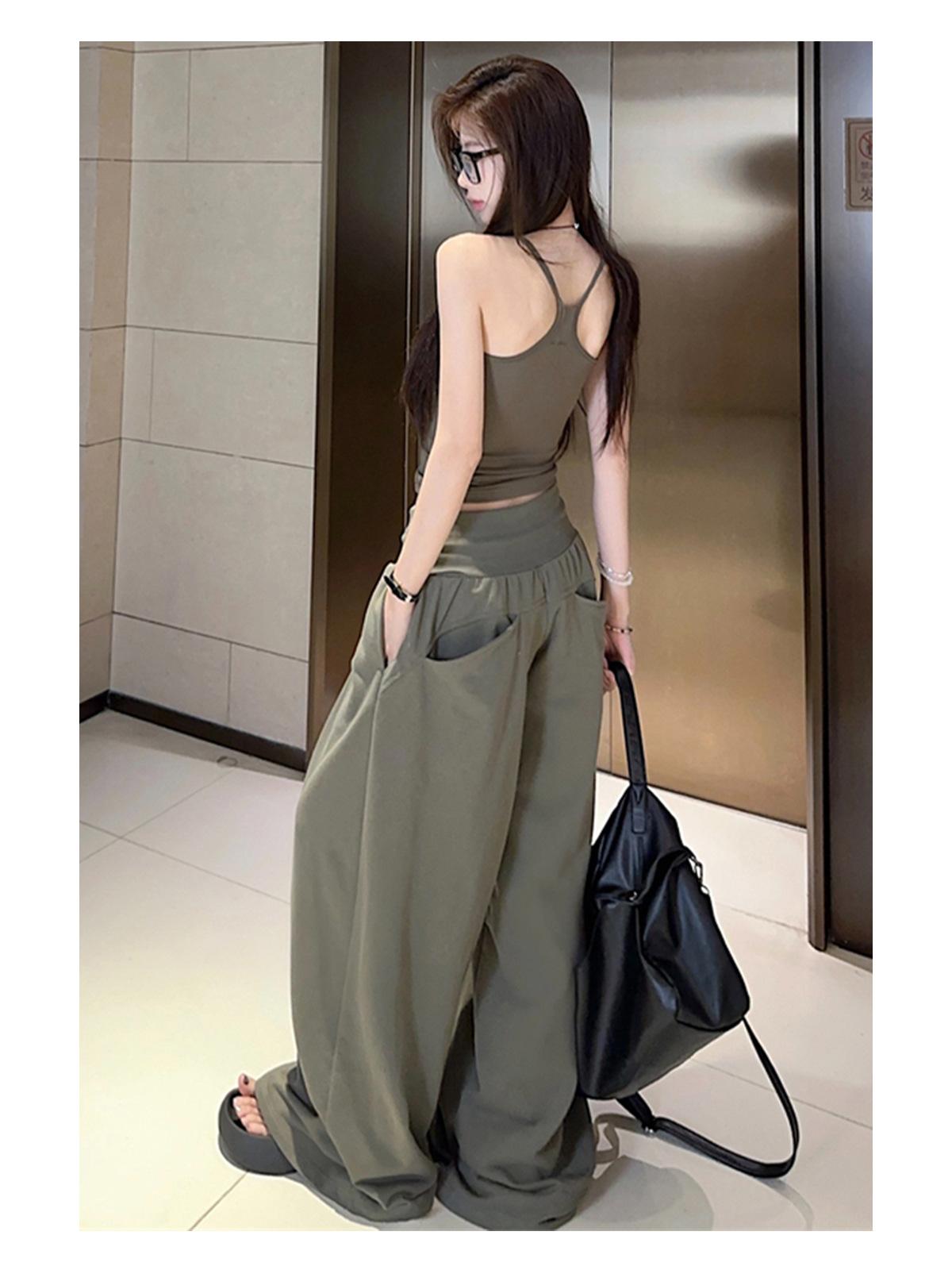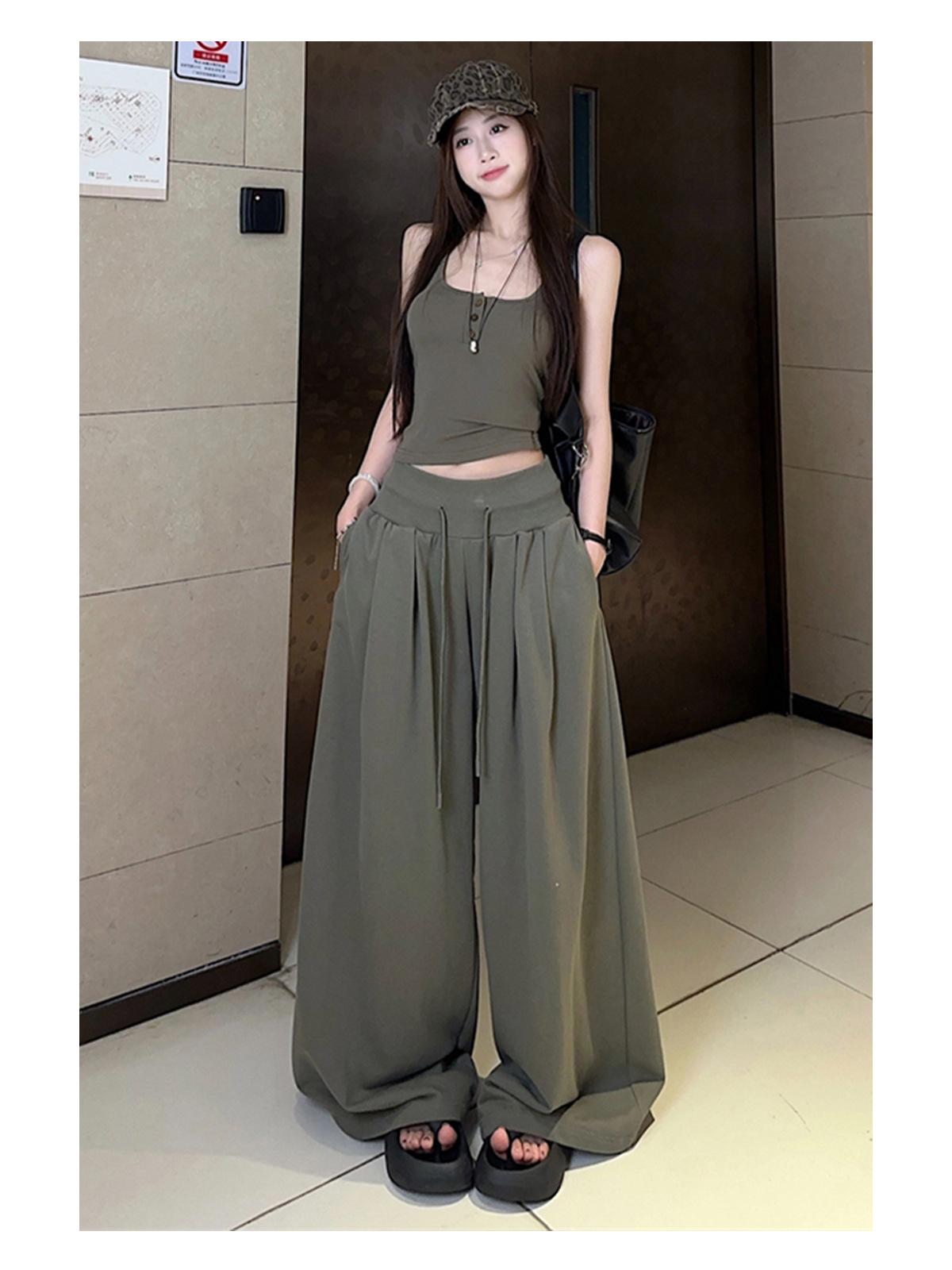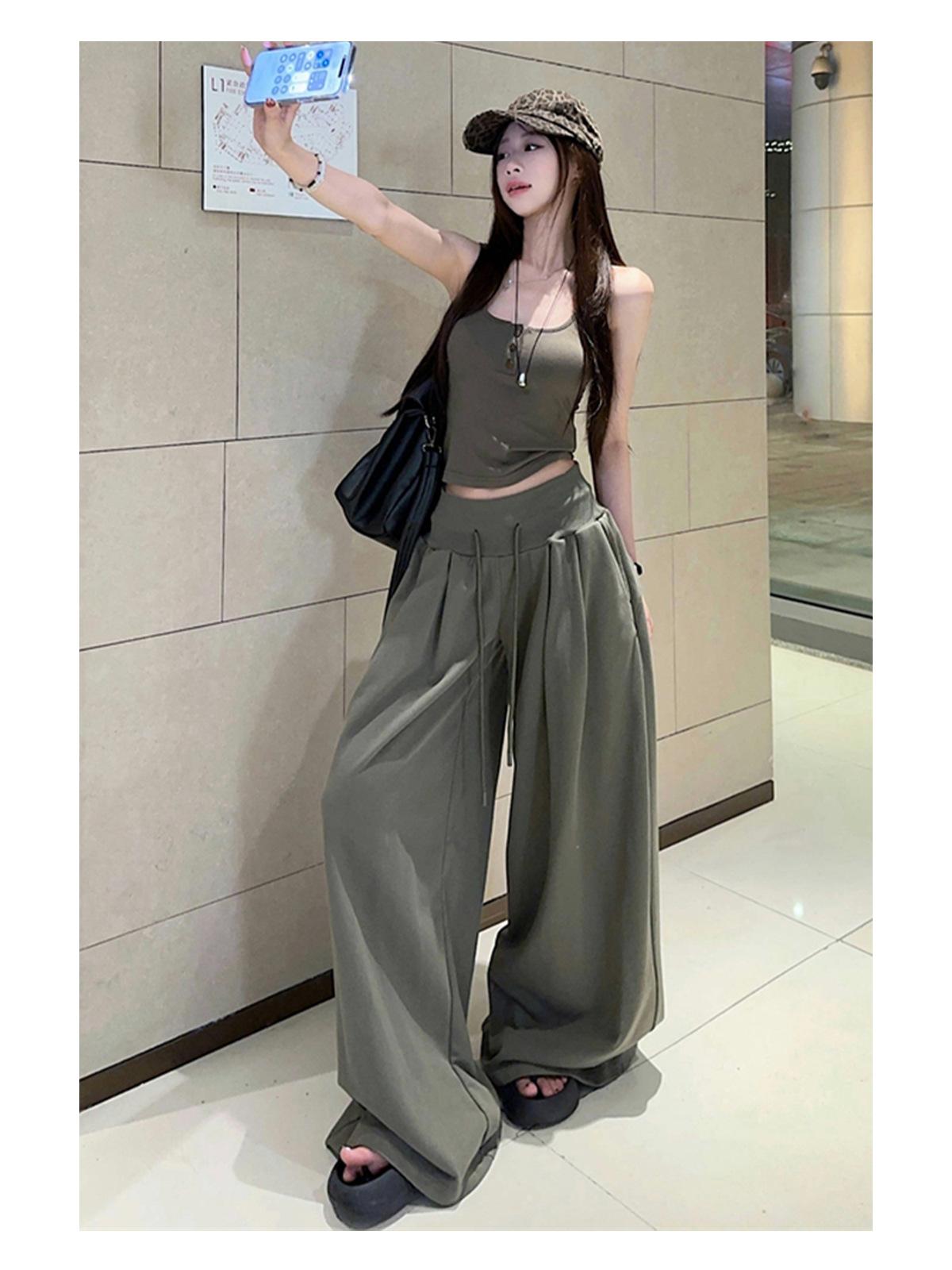 Calças Casuais de Perna Larga Estilo Americano para Mulheres, Verão Novo Solto Versátil Caimento Calças Compridas com Design Único Calças Esportivas