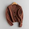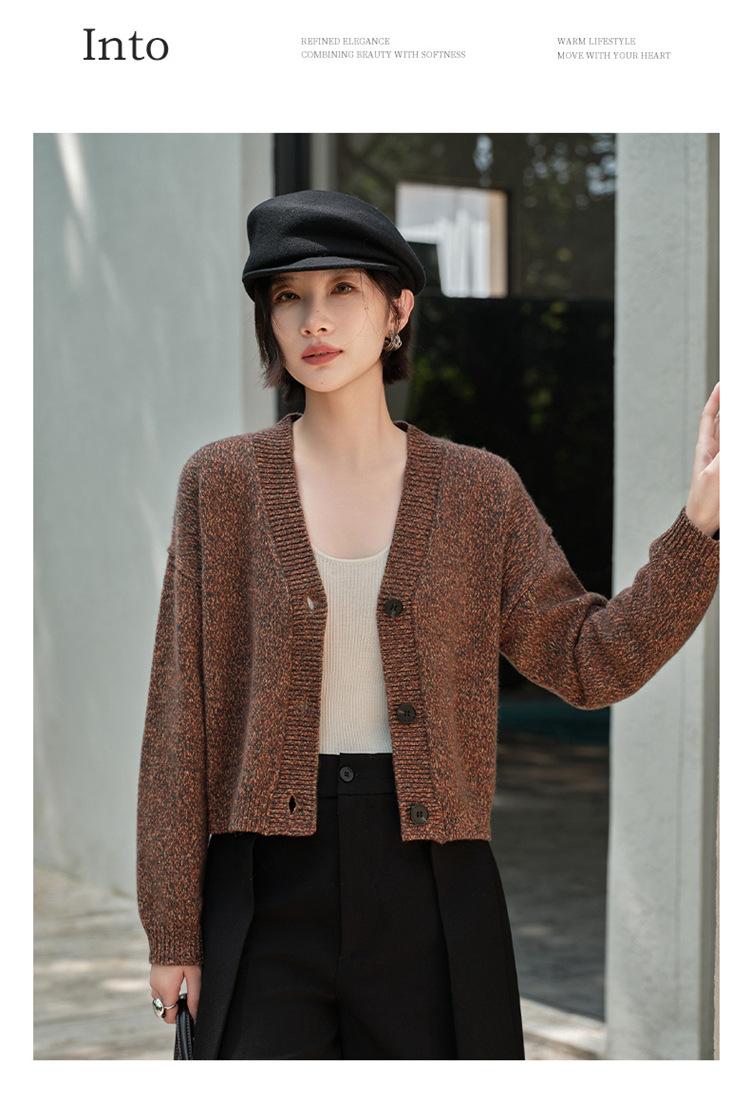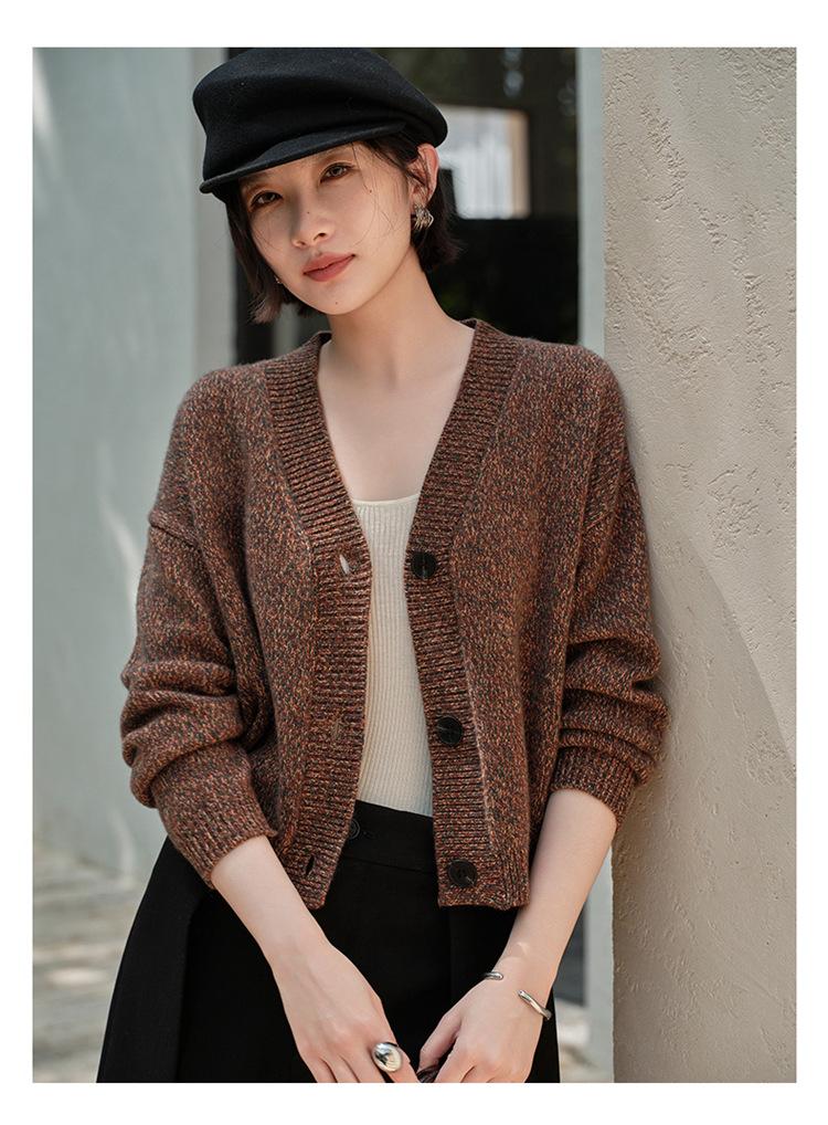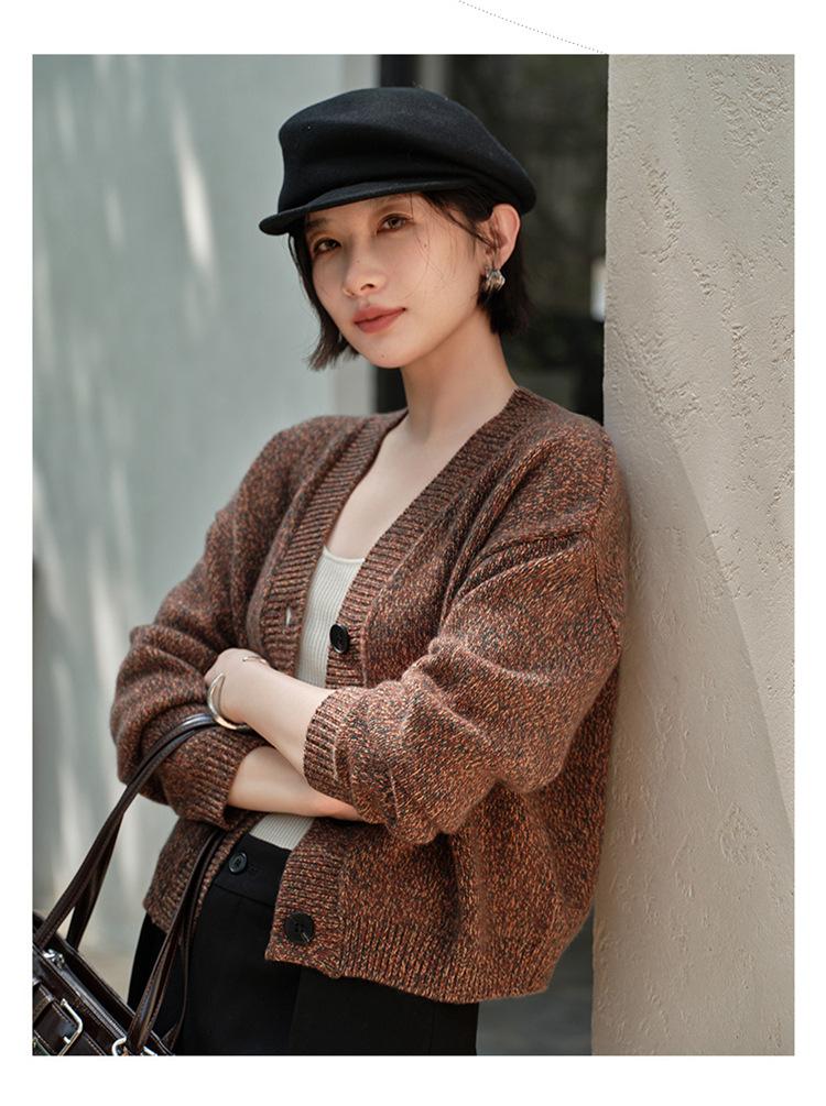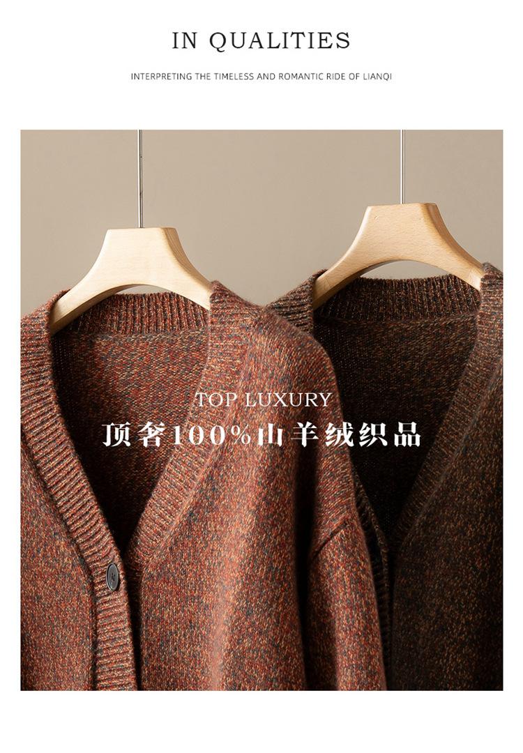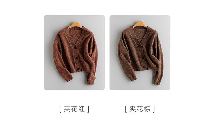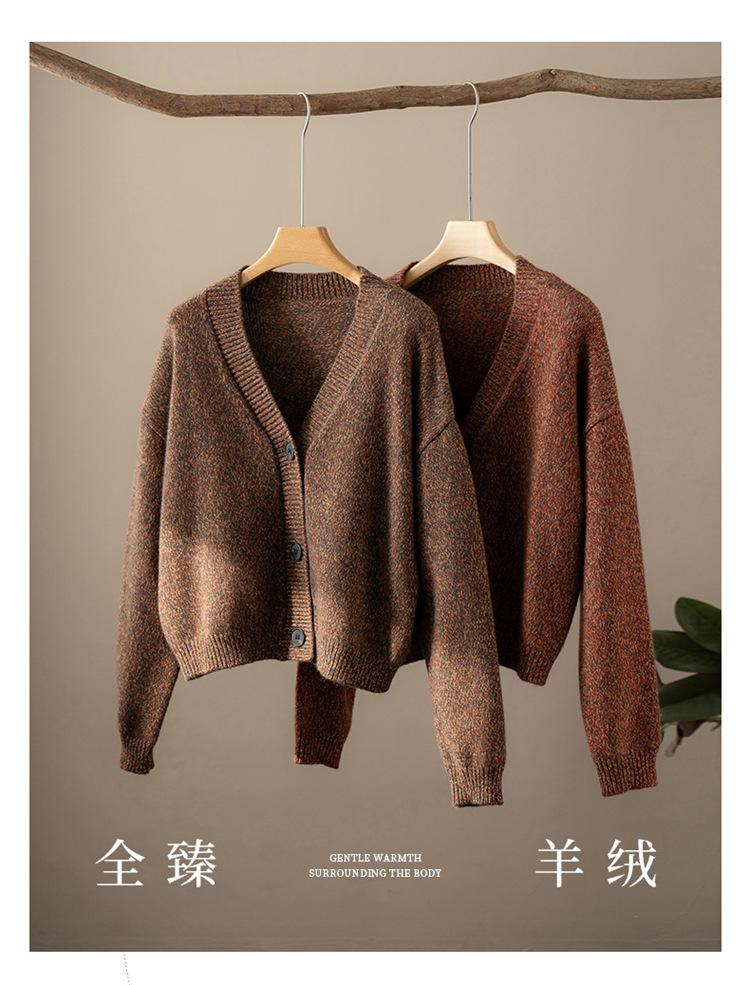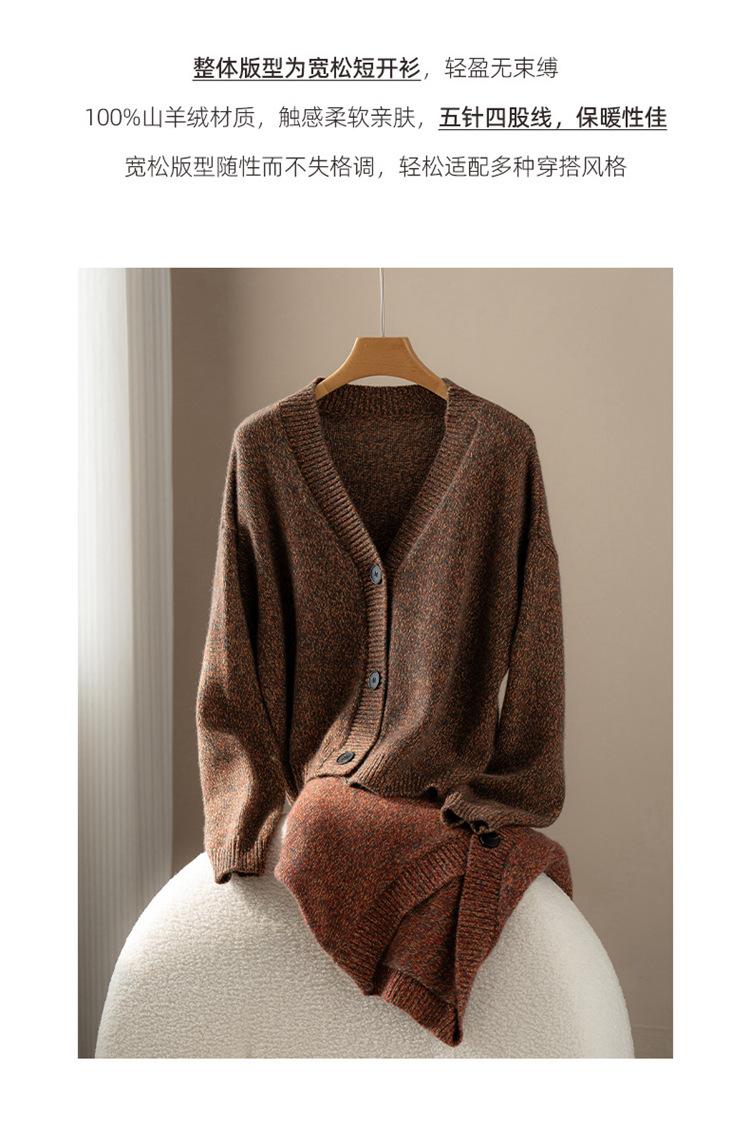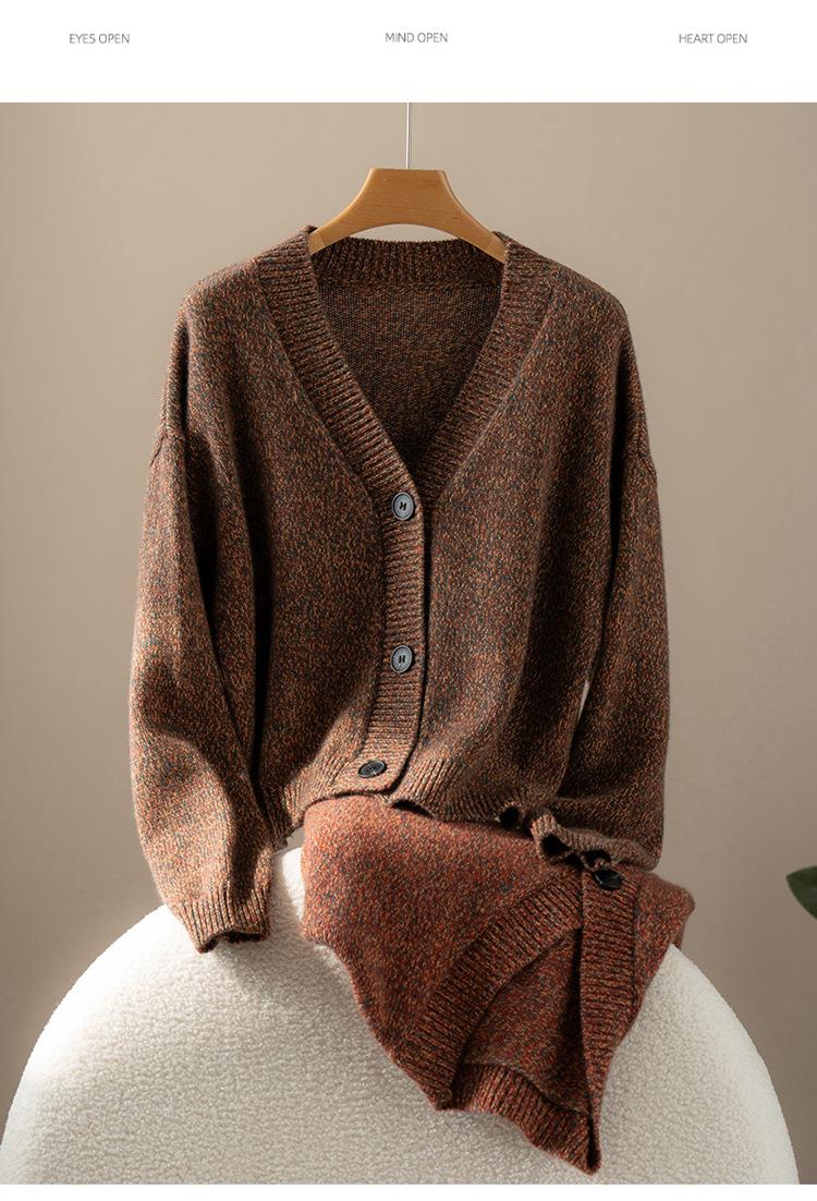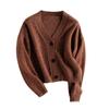 Cardigã decote V 100% cashmere feminino outono e inverno novo suéter de manga comprida outerwear temperamento abotoamento simples top mesclado