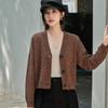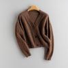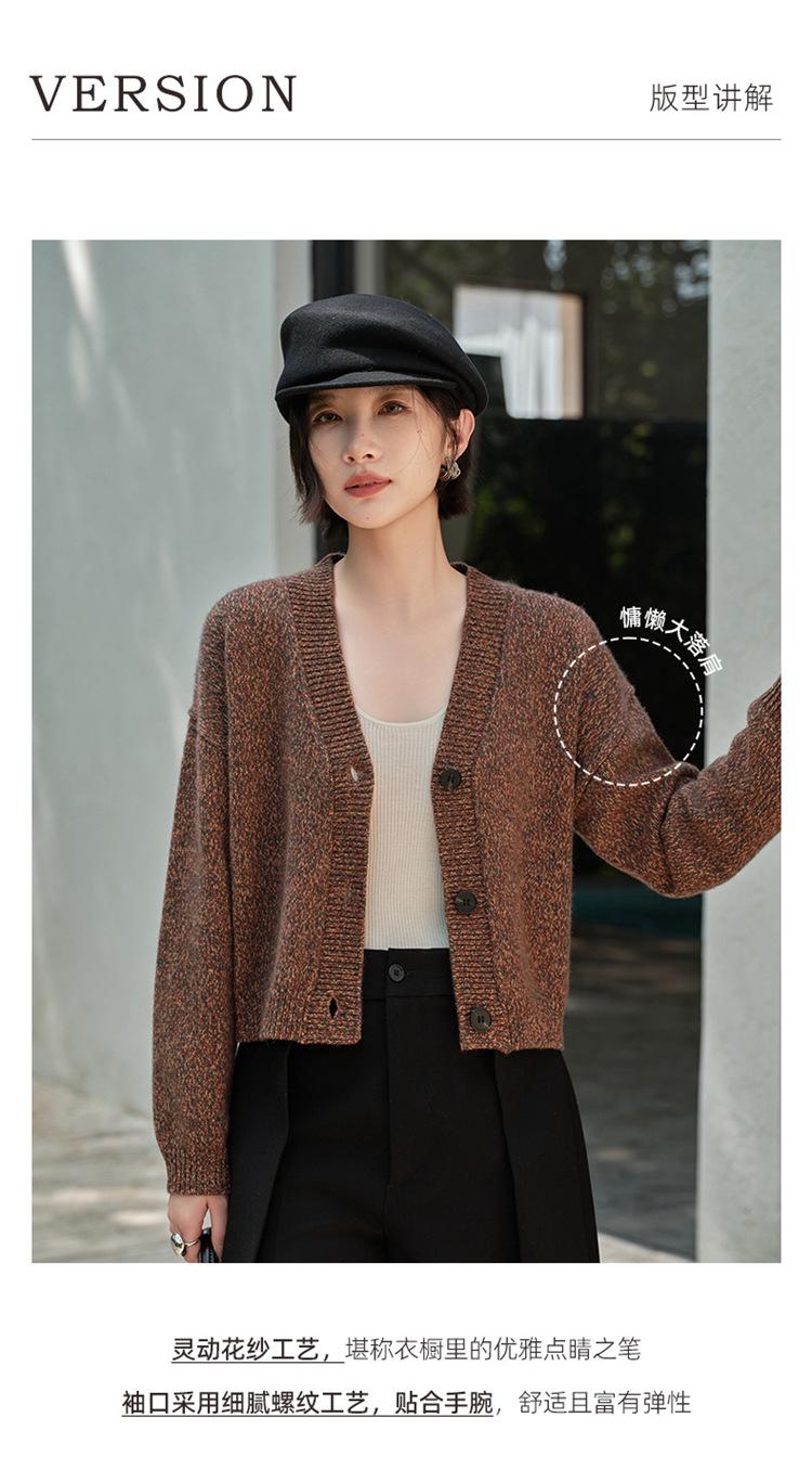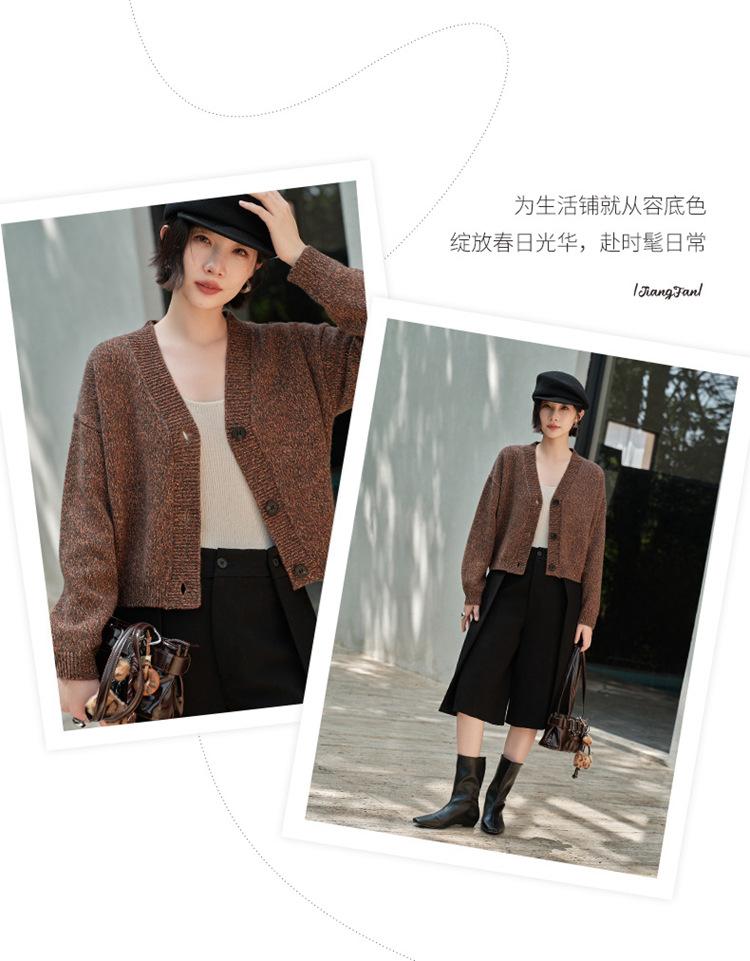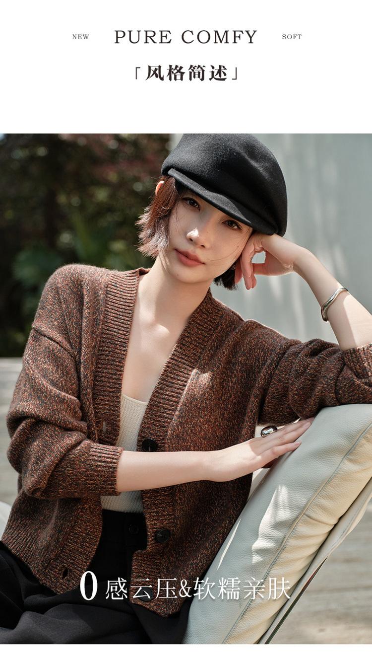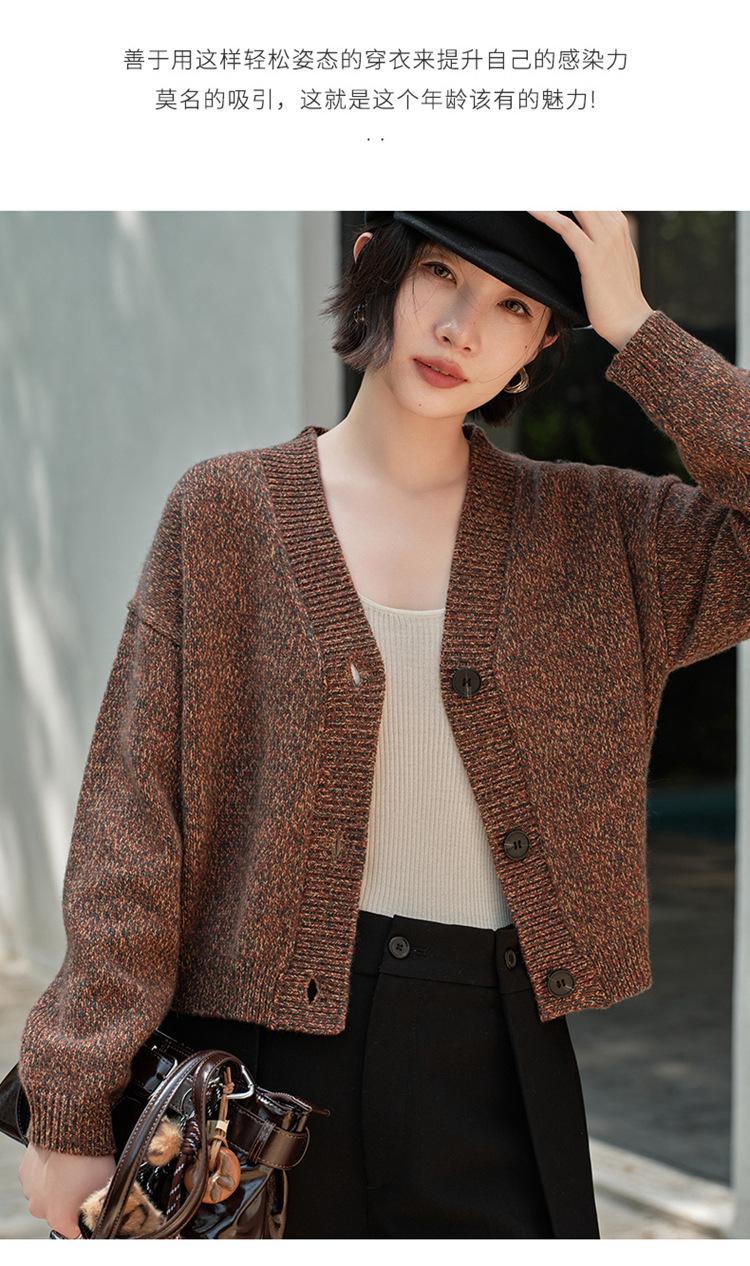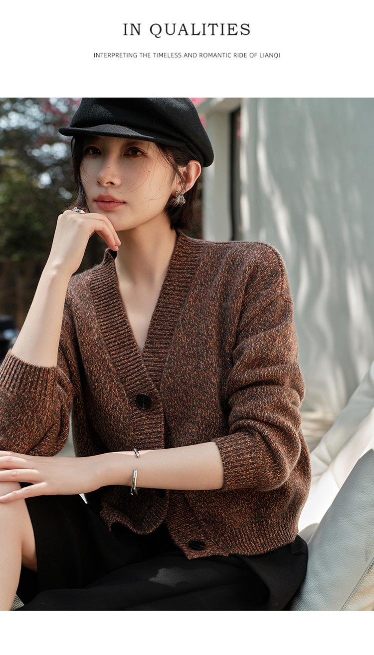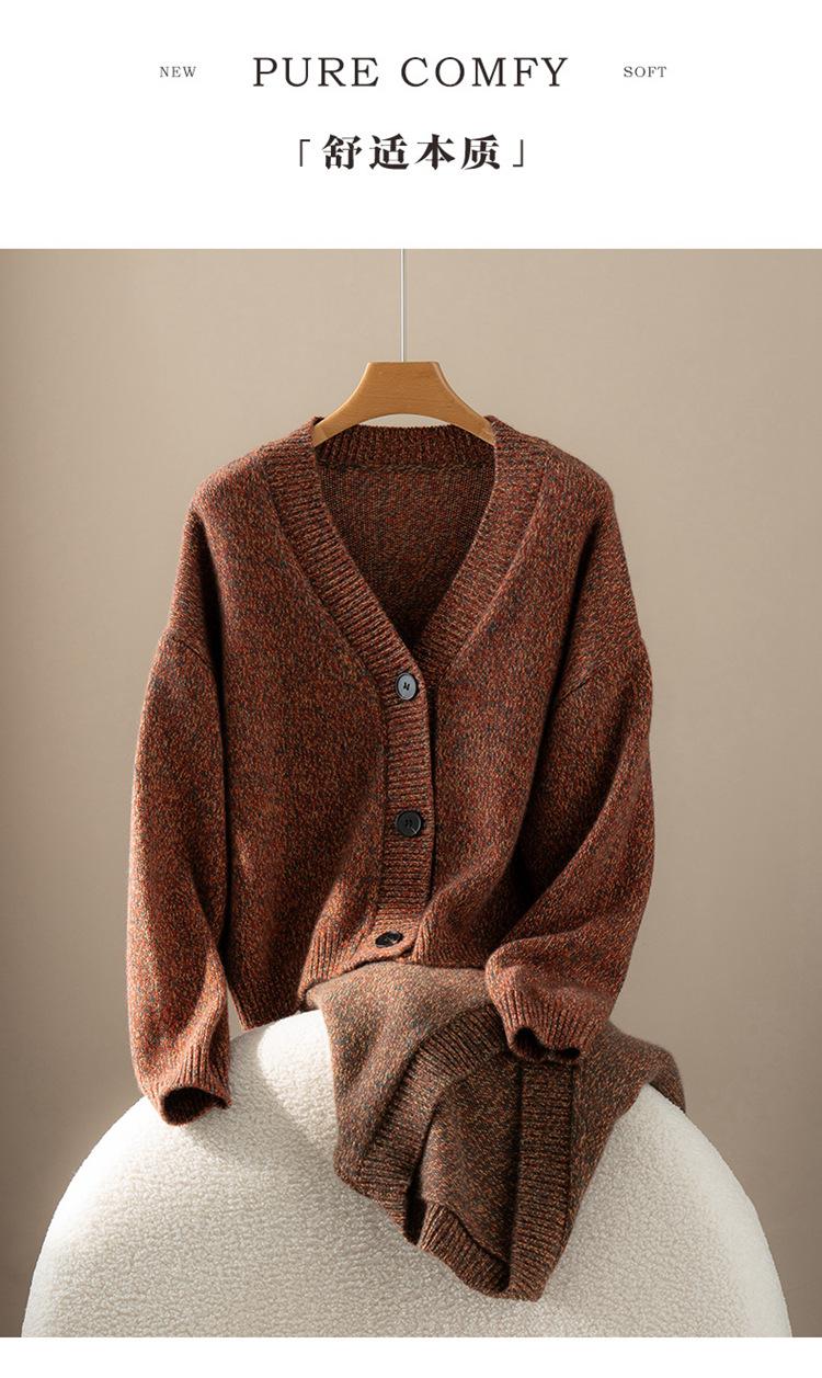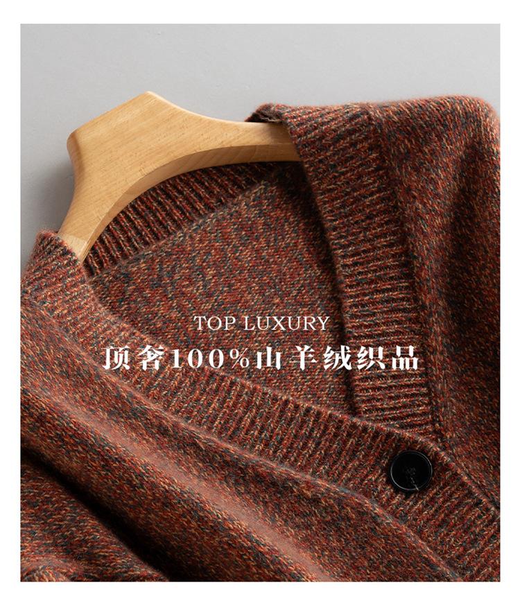Cardigã decote V 100% cashmere feminino outono e inverno novo suéter de manga comprida outerwear temperamento abotoamento simples top mesclado