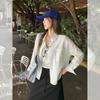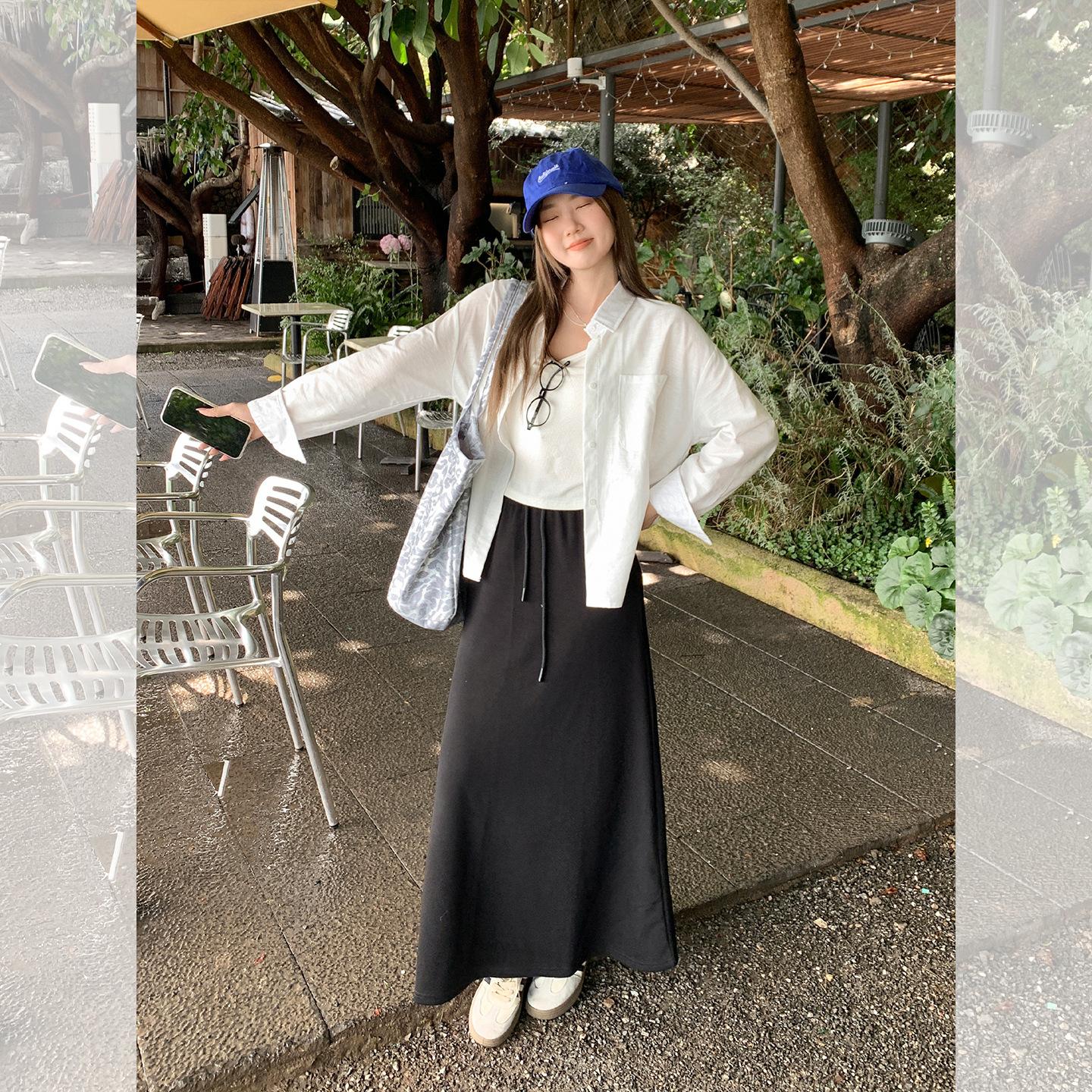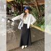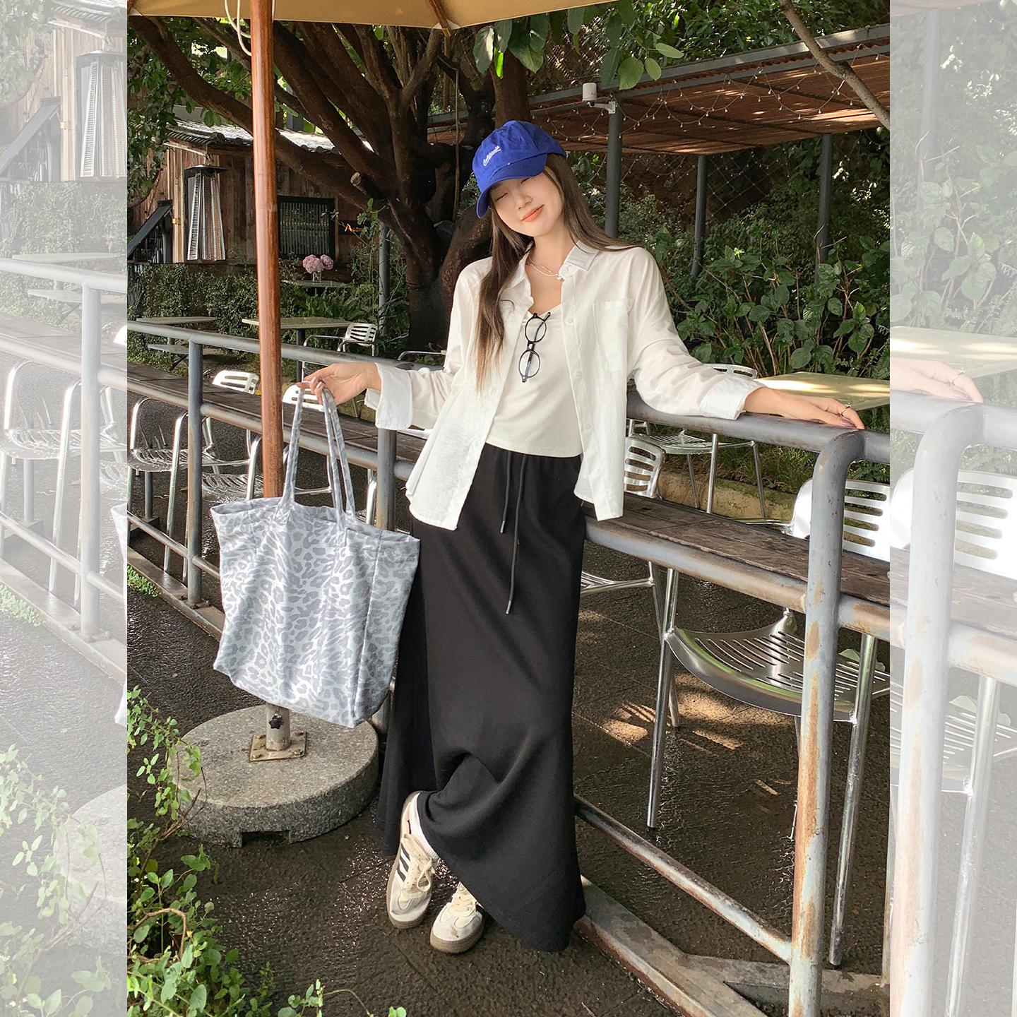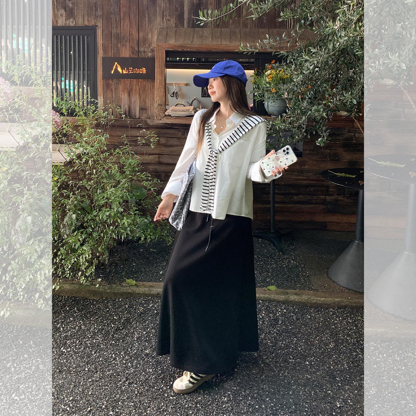 Foto real estilo preguiçoso cor sólida bolso branco solto emagrecimento camisa gola baixa mulheres fino versátil casual camisa outono