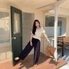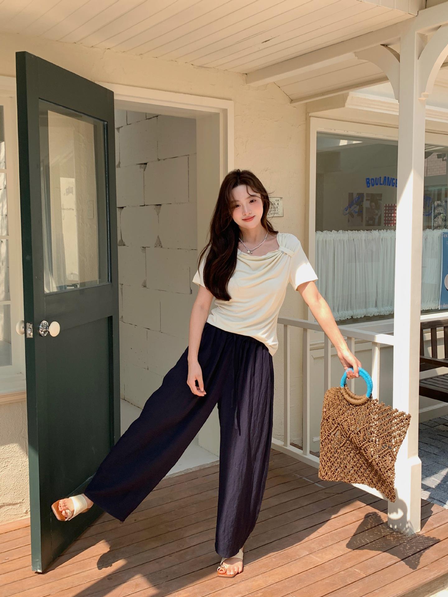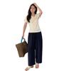 Calças de Verão 2025 Lyocell Tencel Linho Retrô Cintura Alta Amarração Leve Soltas Largas Cropped Calças de Vovó para Mulheres