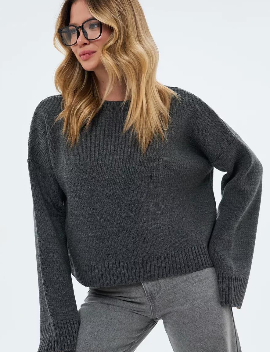 Jaqueta Feminina Transfronteiriça Estilo Europeu e Americano Suéter Outono e Inverno Novo Pulôver Gola Redonda Solto Cor Sólida Suéter de Manga Comprida para Mulheres
