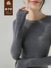Suéter de Lã Tricotado Slim com Gola Redonda para Mulheres Outono Manga Longa Fio Yangtze Ondas d'Água Suéter Sem Costura Camisa Base Top Cinza Claro