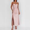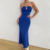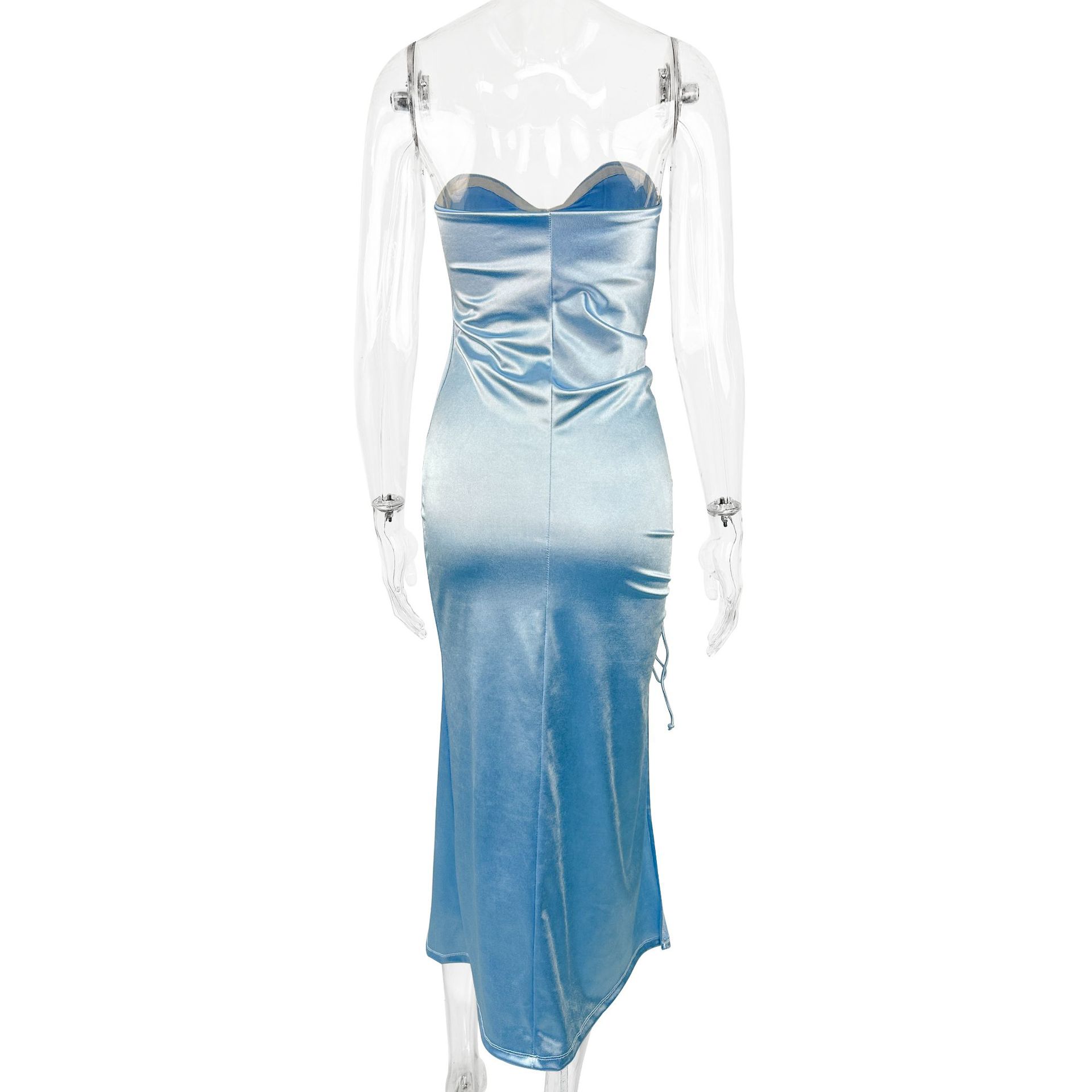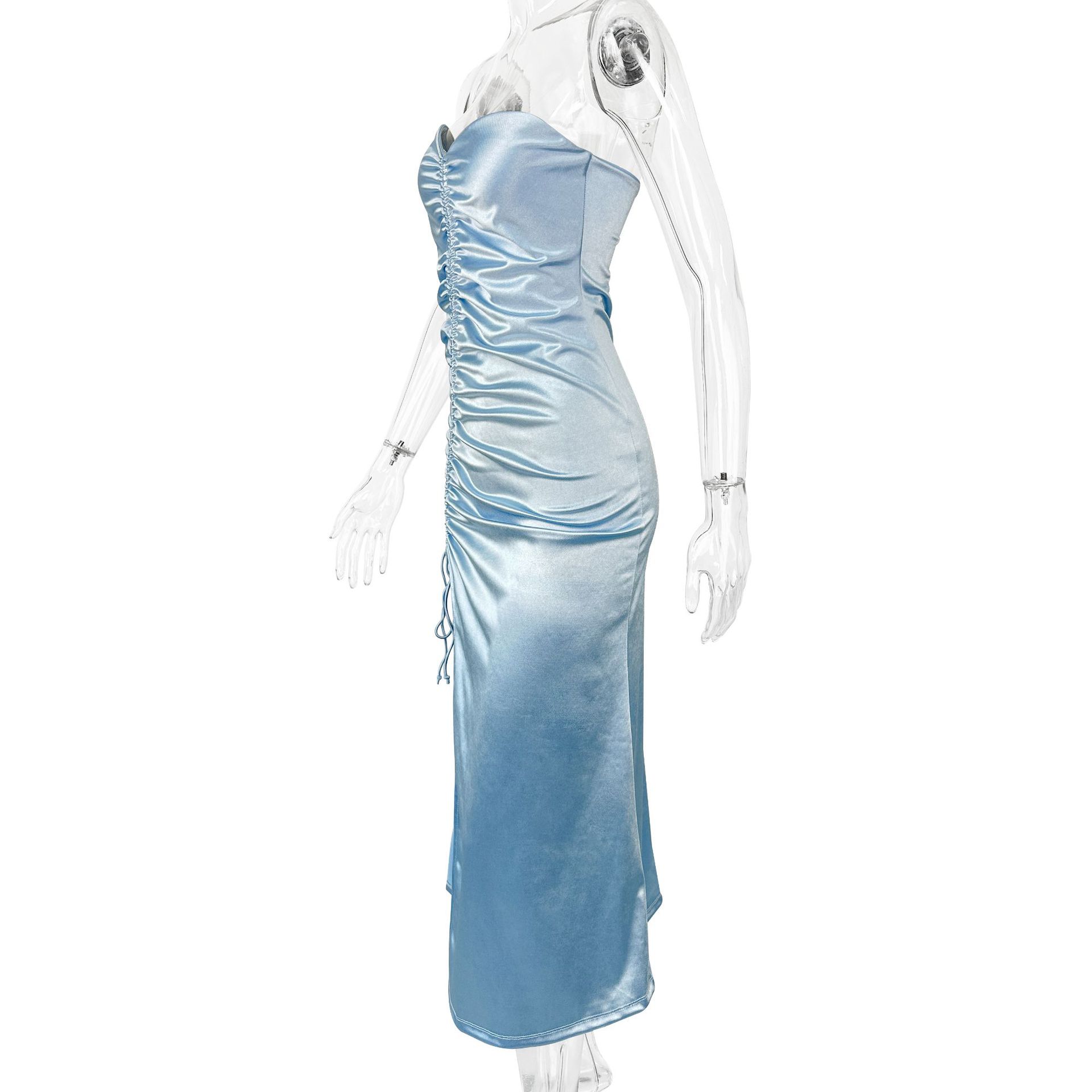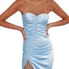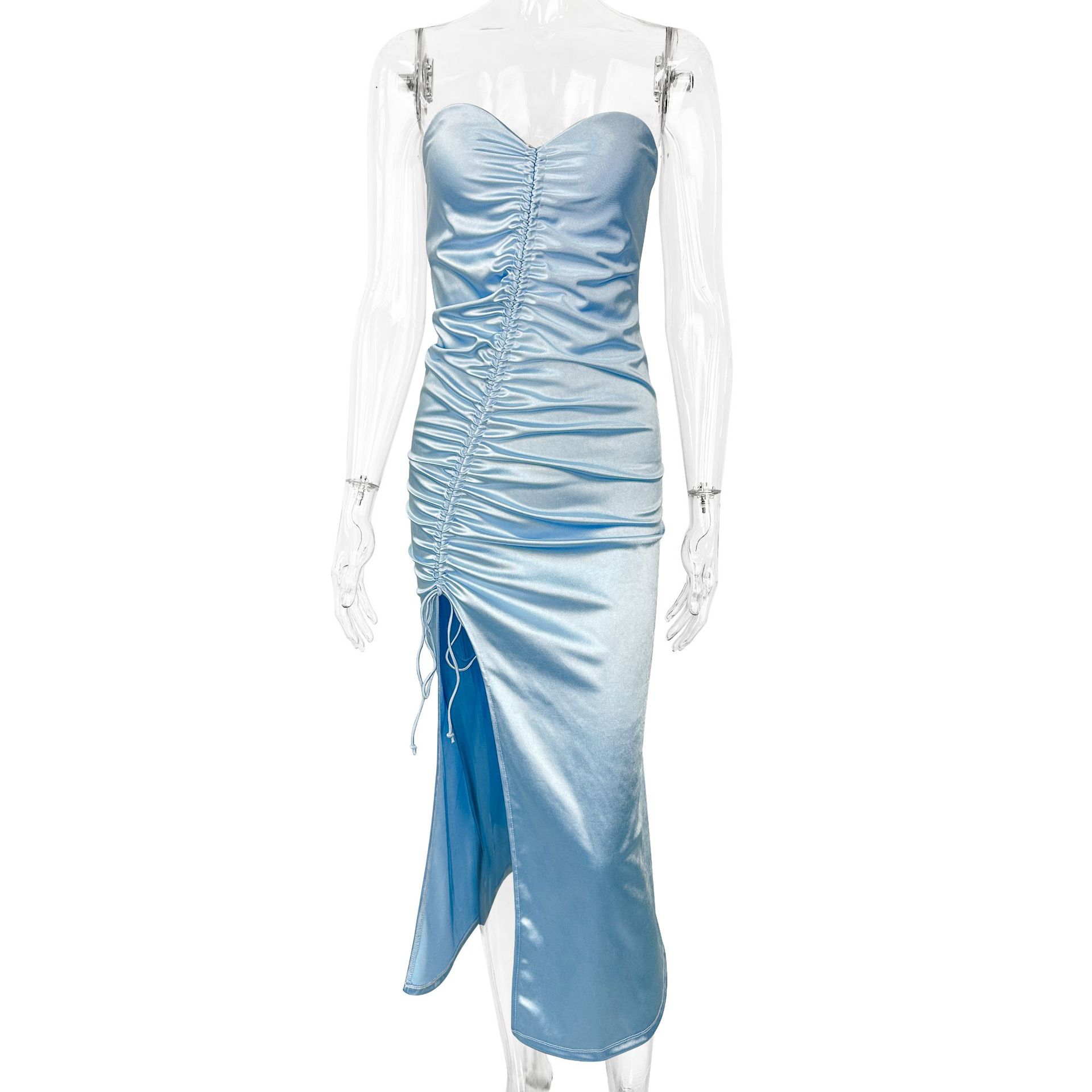 Vestido novo de verão europeu e americano 2025 sem alças, design com fenda lateral,