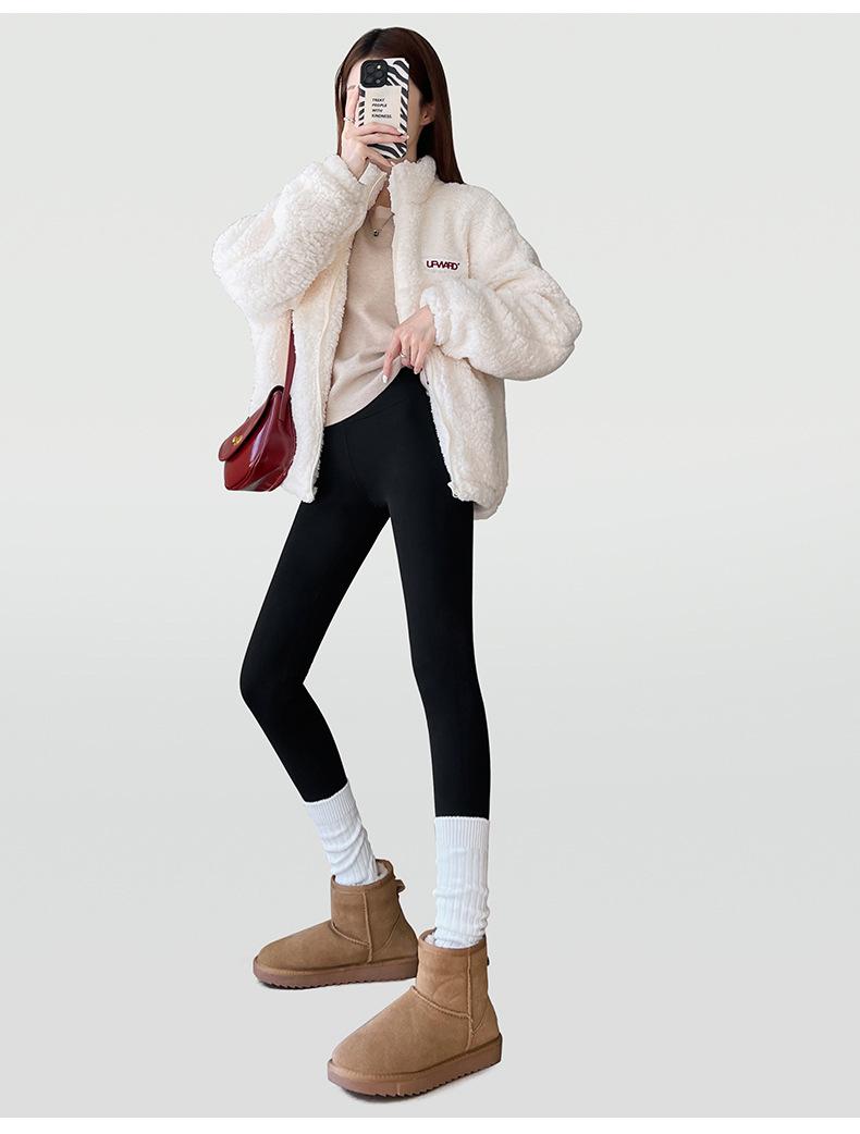 Calças Shark de Caxemira e Seda para Mulheres, Adequadas para Roupa Exterior no Outono e Inverno 2025, Calças de Algodão Quentes Novas com Cintura Alta, Leggings Espessas e Forradas com Lã