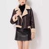 2025 Outono Novo Roupas Femininas Estilo Europeu e Americano Moda Versátil Bloco de Cores Jaqueta Peça Única de Couro e Pele