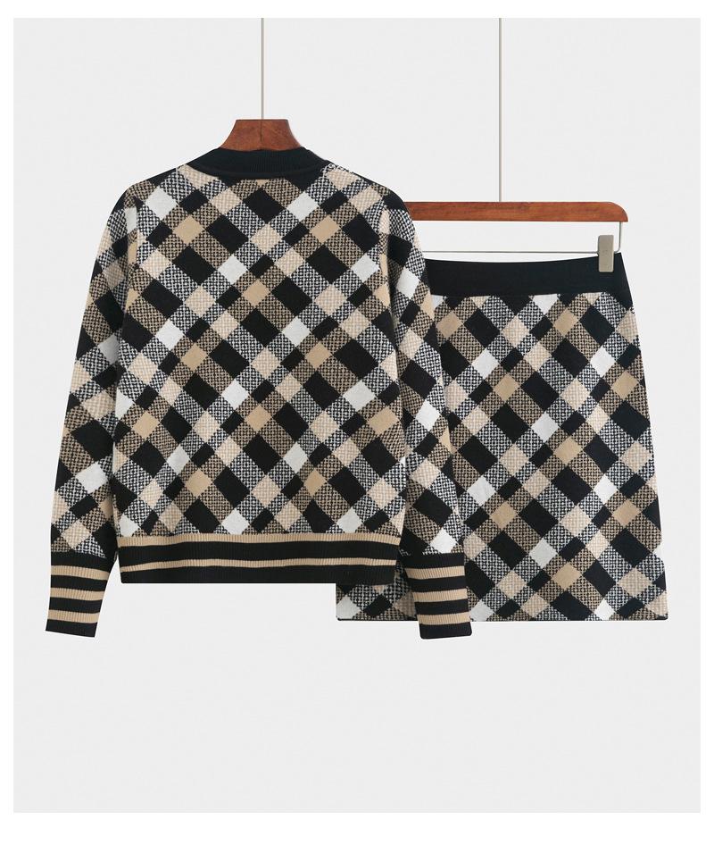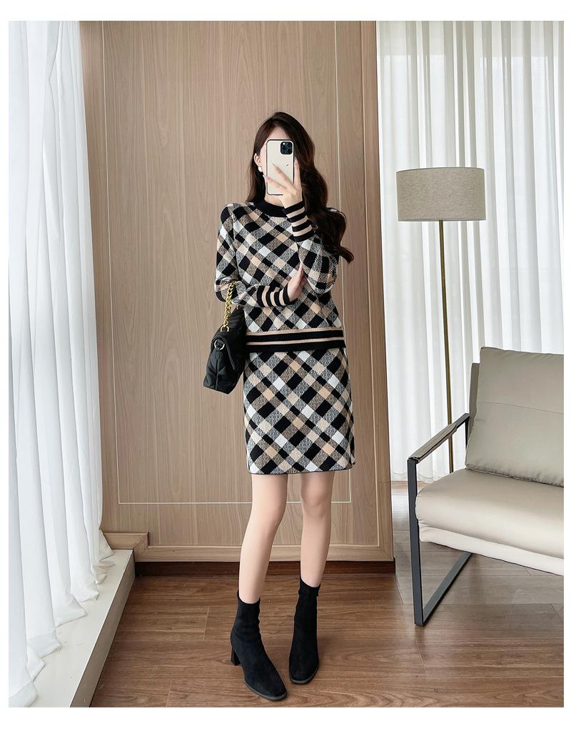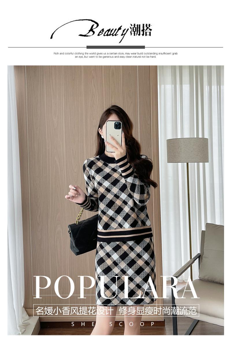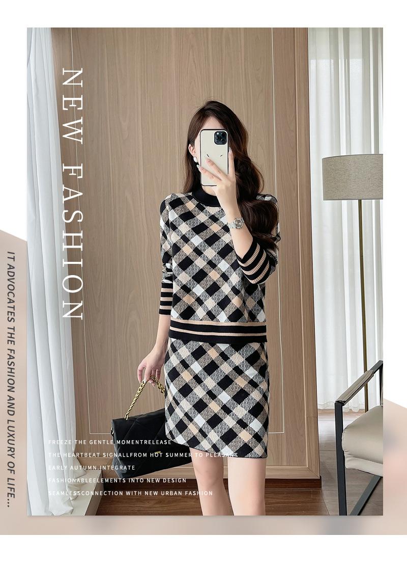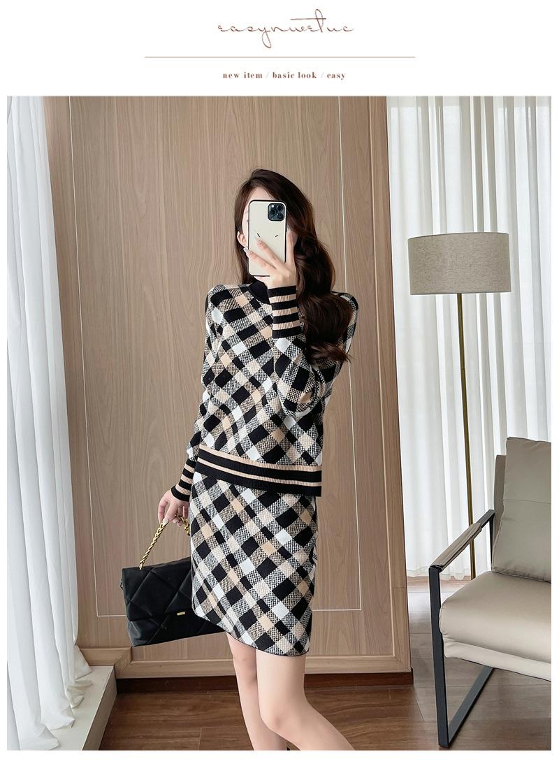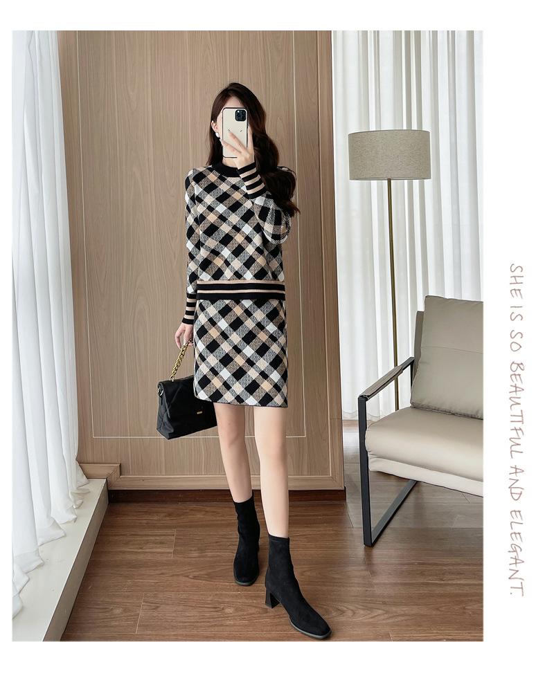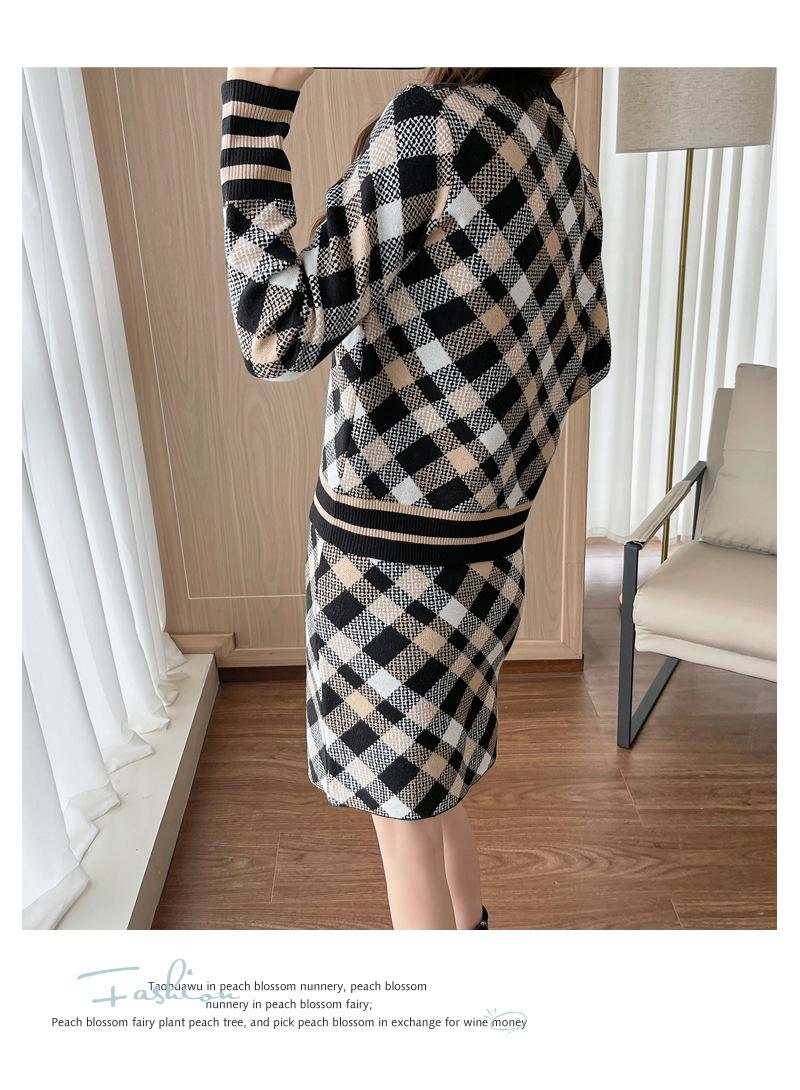 Conjunto de duas peças de malha versátil e emagrecedor estilo Chanel pequeno, saia, feminino, outono, novo, cintura alta, moda, casual, conjunto, saia curta de comprimento médio