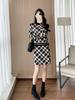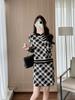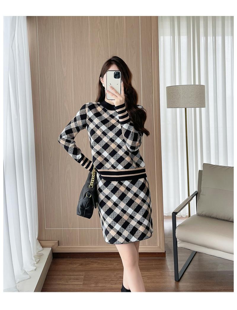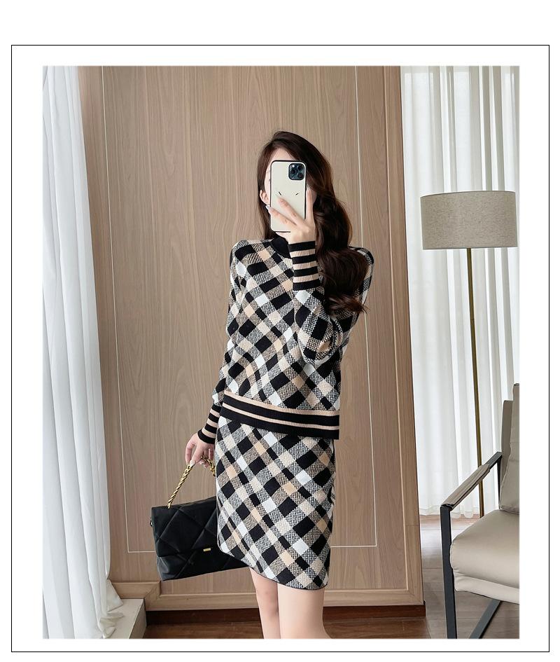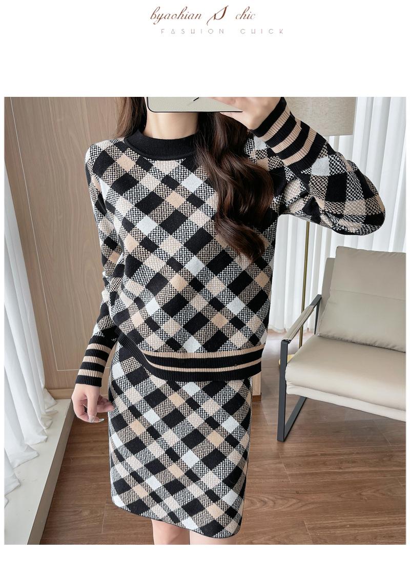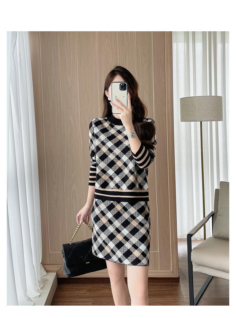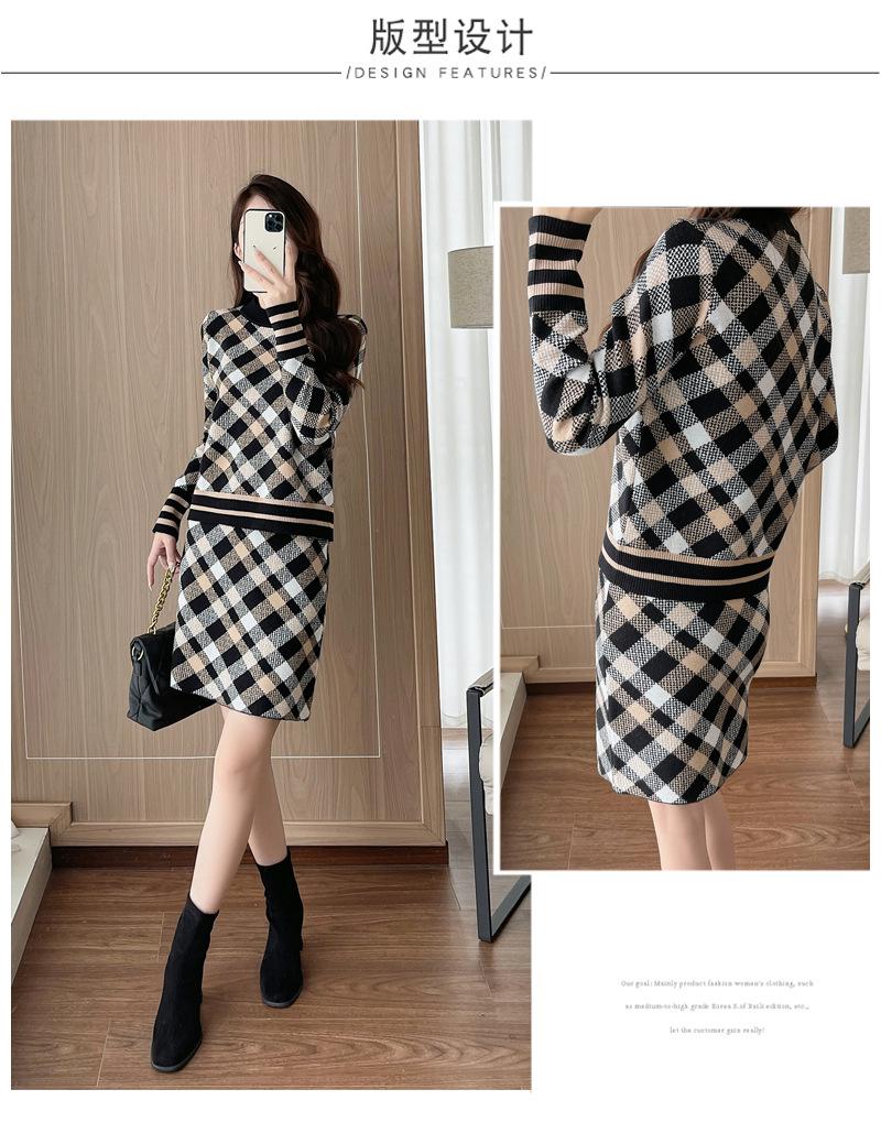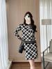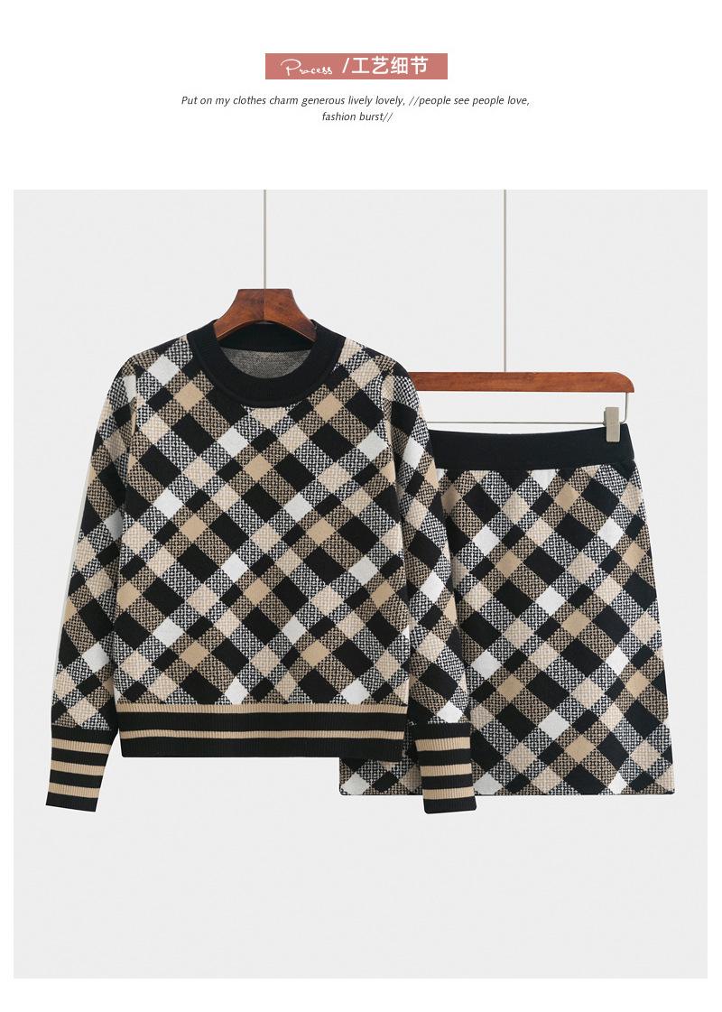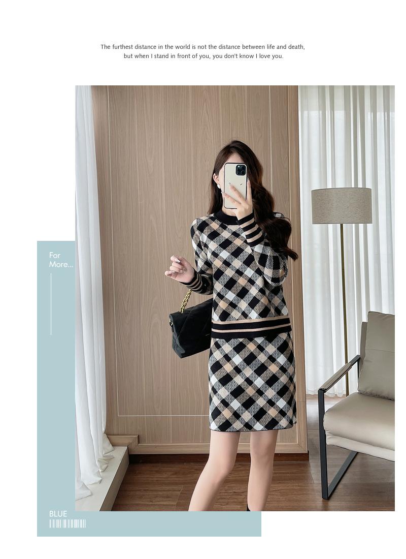 Conjunto de duas peças de malha versátil e emagrecedor estilo Chanel pequeno, saia, feminino, outono, novo, cintura alta, moda, casual, conjunto, saia curta de comprimento médio