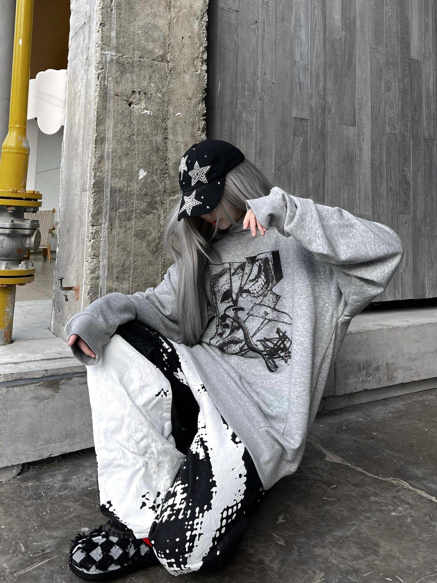 Suéter com Capuz Feminino Estampado Forrado com Lã Grosso Casual Esportivo Roupas com Capuz Distintivo Street Combina com Tudo Fino
