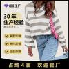 Suéter Solto Listrado Contrastante Estilo Europeu e Americano para Mulheres Gola Redonda Casual Manga Lanterna Versátil Mais Vendido Transfronteiriço Top Tricotado para Mulheres