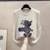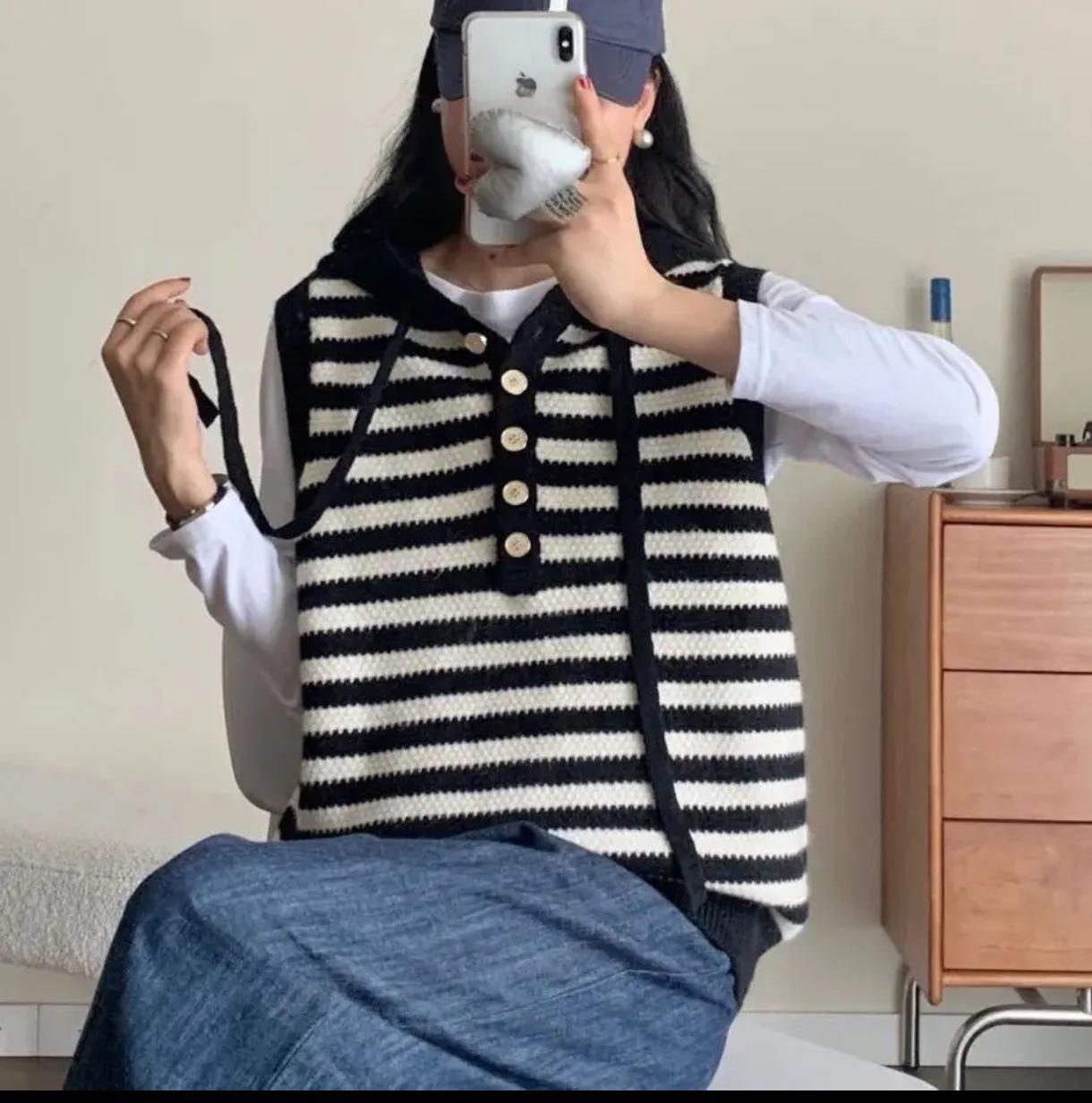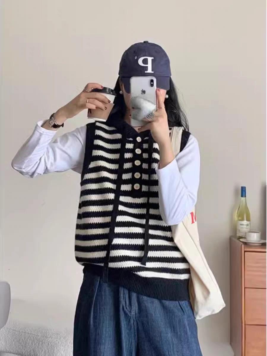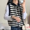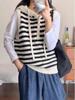 Estilo Universitário 2025 Outono/Inverno Novo Temperamento Versátil Listrado Lã Tricô Pulôver Moletom Colete Top Feminino