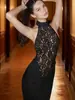 Vestido Elegante Europeu e Americano para Mulheres 2025 Novo Renda Sexy Cintura Marcada Grande Decote Costas Suspensório Emagrecimento Vestido Saia Longa para Mulheres