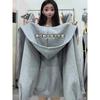 Moletom Europeu e Americano Pesado Moletom Feminino Solto Tendência Casual Esportivo Jaqueta Emagrecedora Moletom com Capuz Lã Prateada de Raposa Cor Sólida